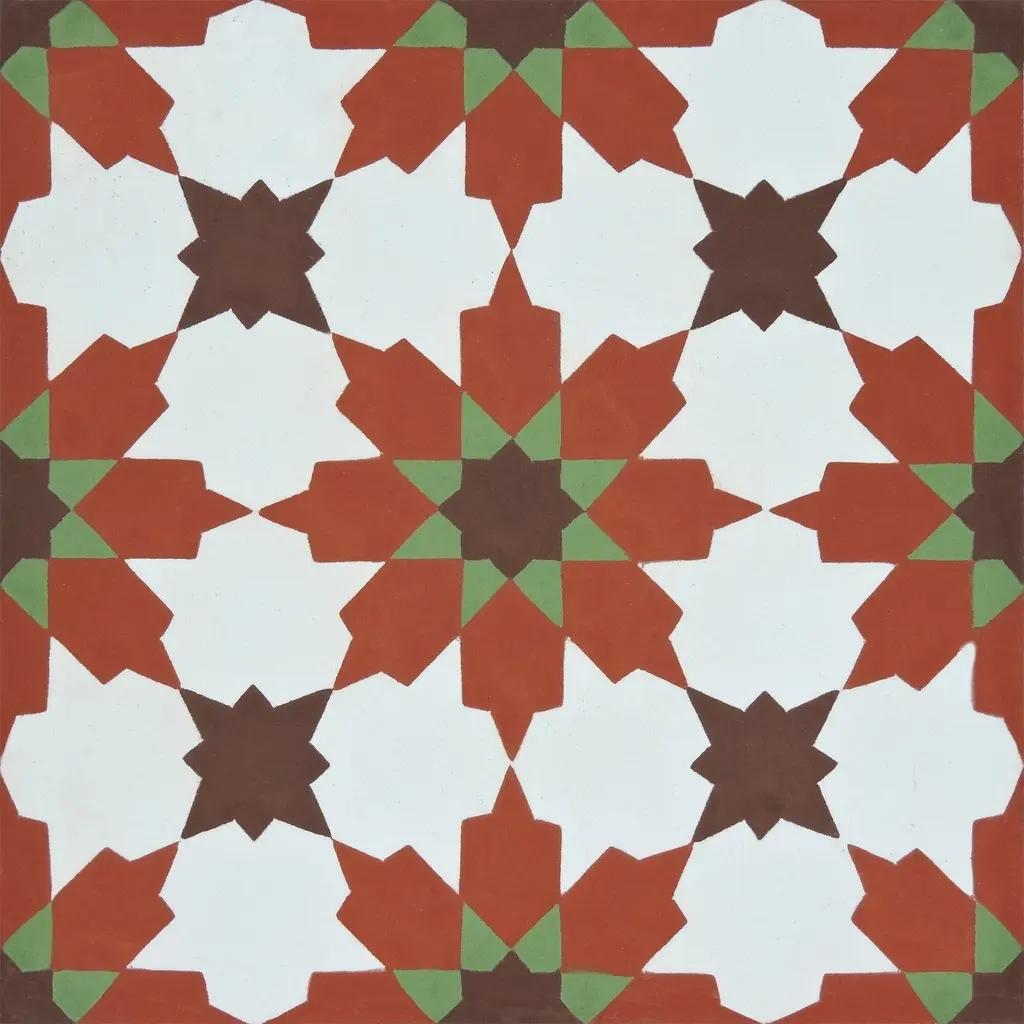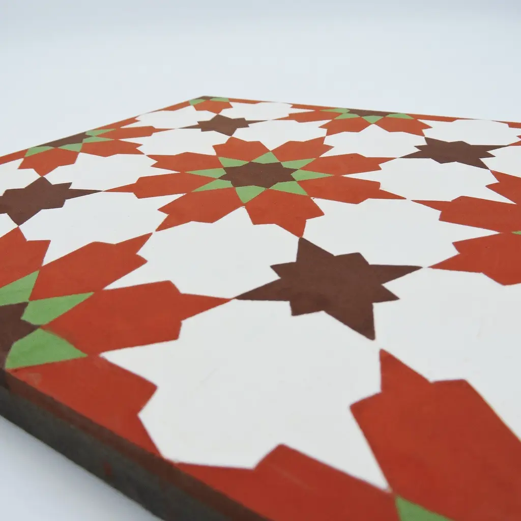 Handmade Ahfir In Red, Dark Brown, Green Tile, Pack Of 12 (Morocco) - Box Of 12 Tiles