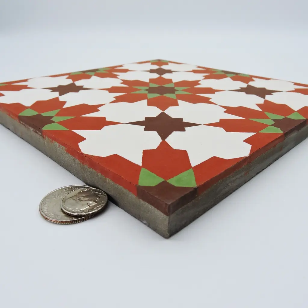 Ahfir is an authentic lively cement tile that will bring a ray of sunshine into your life. Its alluring floral pattern will get you ready for the day, awakening your mind and body. Its colors add a cool and serene energy. Ahfir will balance out your home.Handmade by a talented craftsman in Morocco, this tile will add a splash of color to any setting. Details: Pack of 12 tiles when ordering a box (8x8), Sample is 1 tile only • Handmade in Morocco • Moroccan Mosaic and Tile House brand • Designed for either the floor or wall • Made with cement and granite • Decorative geometric pattern • Measures 8 inches long x 8 inches wide • Tile thickness: 0.5 inches • 2.3 tiles per square foot • 12 tiles per box • 5.22 square feet per box • Professional installation is recommended • Environmentally responsible and resource efficient • Low maintenance Story Behind the Art: Master craftsman Lahoucine was born in Morocco into a family of master craftsmen specializing in the tradition of Moorish tile making. This tradition is passed down from generation to generation to ensure the sustainability of these art. The Moroccan Mosaic and Tile is an element of Moroccan architecture that has perfectly adapted to contemporary styles of decoration while preserving artisanal touch. For our part, we have incorporated several techniques and improvements to our products to make them both more attractive and more durable said Lahoucine. Please be aware that if you order more than 151 pounds of tile or flooring, the order may need to be shipped Freight and our Oversized Item Delivery/Return policy will apply.