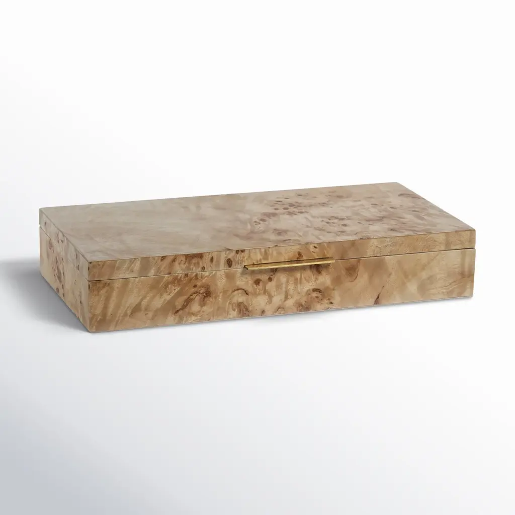 This decorative box is where craftsmanship meets elegance. With a sleek rectangle design, it features a lacquered wood exterior adorned with crystal accents, offering a touch of sophistication to any space. The velvet-lined interior adds a layer of luxury, making it ideal for storing cherished keepsakes. Accented with aged brass hardware and a crystal knob, this piece seamlessly blends functionality with style.