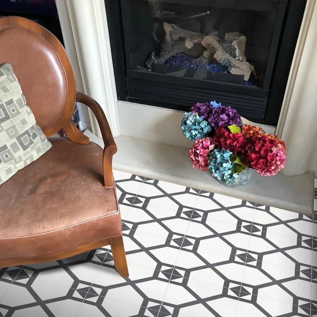 Design a dazzling backsplash, floor, or wall with these stunning tiles. Handmade by skilled Moroccan artisans for superior craftsmanship and traditional authenticity. These decorative tiles made from cement are durable indoors and outdoors. Weather-resistant and waterproof, the eco-friendly Moroccan tiles support your commitment to a greener home.· Features:· Handmade in Morocco· Moroccan Mosaic and Tile House Brand· Decorative floor and wall tiles· Made of cement materials· Professional installation is recommended.· Tiles need to be sealed before and after grouting.· Eco-friendly· Indoor or outdoor use· Geometric pattern· When ordering a box, 12 tiles come included. Sample is just 1 tile.· 12 tiles per box, covering 5.22 square feet.· 2.3 tiles per square foot· Each tile measures 8 inches wide x 8 inches long· Story Behind the Art: "It's more than tile, it's art." That simple statement is what sets the craftsmanship of Moroccan Mosaic apart from the rest. Based in the small city of Sale, Moroccan Mosaic is a family business going back 4 generations. When Simo, the current head of the business graduated from university in New York, he had little interest in the family business. But on a return trip home, he saw that the business was not doing well and set about reviving it. One important change he made was introducing black, grey, and white designs to appeal to American and European customers. It worked. When he started, they employed 2 workers and now they have nearly 80 on staff. The workshop itself is fairly simple, and the techniques used to create the tiles are steeped in tradition. Some modern equipment is available, though the workers prefer to use the more rustic tools. The creative process is time intensive and done by hand, as Simo insists on no corners be cut or production be rushed. Environmentally responsible and resource efficient, no chemicals are used at any step. For example, colors used come from nature literally. Green comes from mint leaves, orange from orange peel, and black from charcoal. The tiles themselves are a simple mixture of cement, sand, and granite powder. Moroccan Mosaic hires only local workers, teaching them a valued skill as well as paying them fair wages. Simo's goals for his business are to share the tradition of gorgeous Moroccan tile, grow the business, and employ more and more workers.