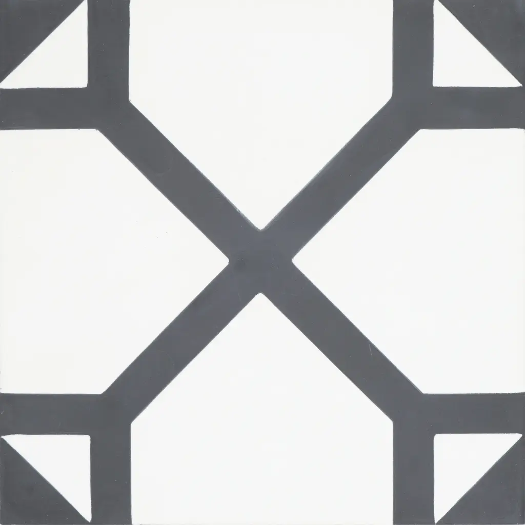Handmade Mogador In White And Black Cement Tile, Pack Of 12 (Morocco) - Box Of 12 Tiles