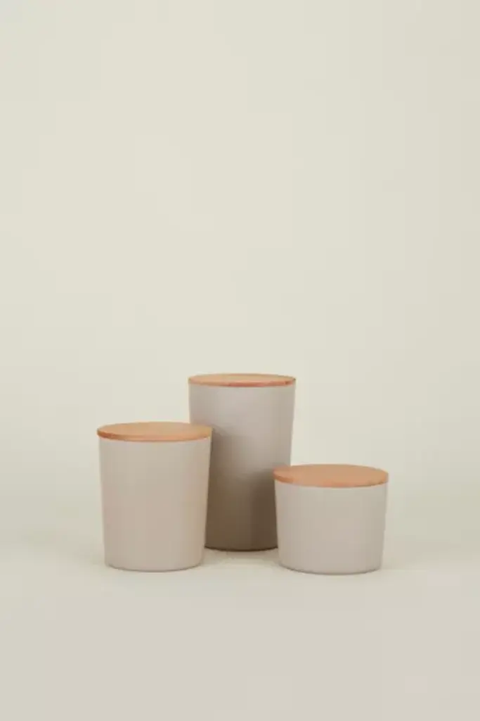 We love them for prepping/serving/leftovers - but also as storage in the bathroom. Made of recycled bamboo with a dishwasher-safe base. Choose from 3 colorways. **Content + Care** \- Recycled Bamboo Fiber \- Containers are dishwasher Safe, do not microwave. Lids are hand wash only. \- Imported **Size + Fit** \- Small 3.5"D x 3.5"H. Medium 3.5"D x 5.25"H. Large 3.5"D x 7"H