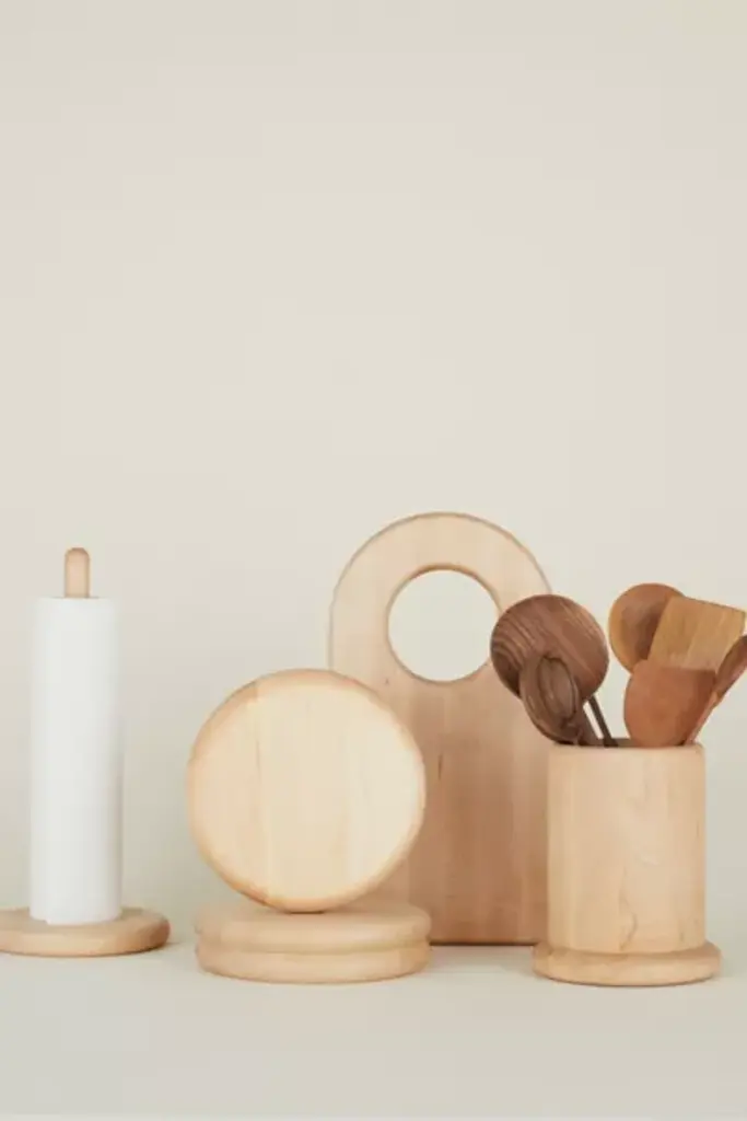 For all your stoveside tools and gadgets. Soft-turned, rounded edges that make handling it a pure curvesome pleasure. **Content + Care** \- Maple \- Wipe clean with a damp cloth \- Imported **Size + Fit** \- 6.5""D x 7.5"H