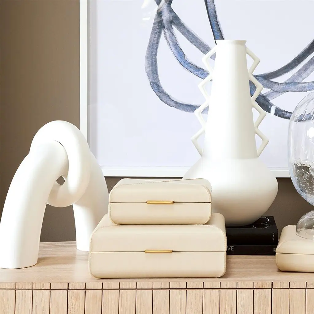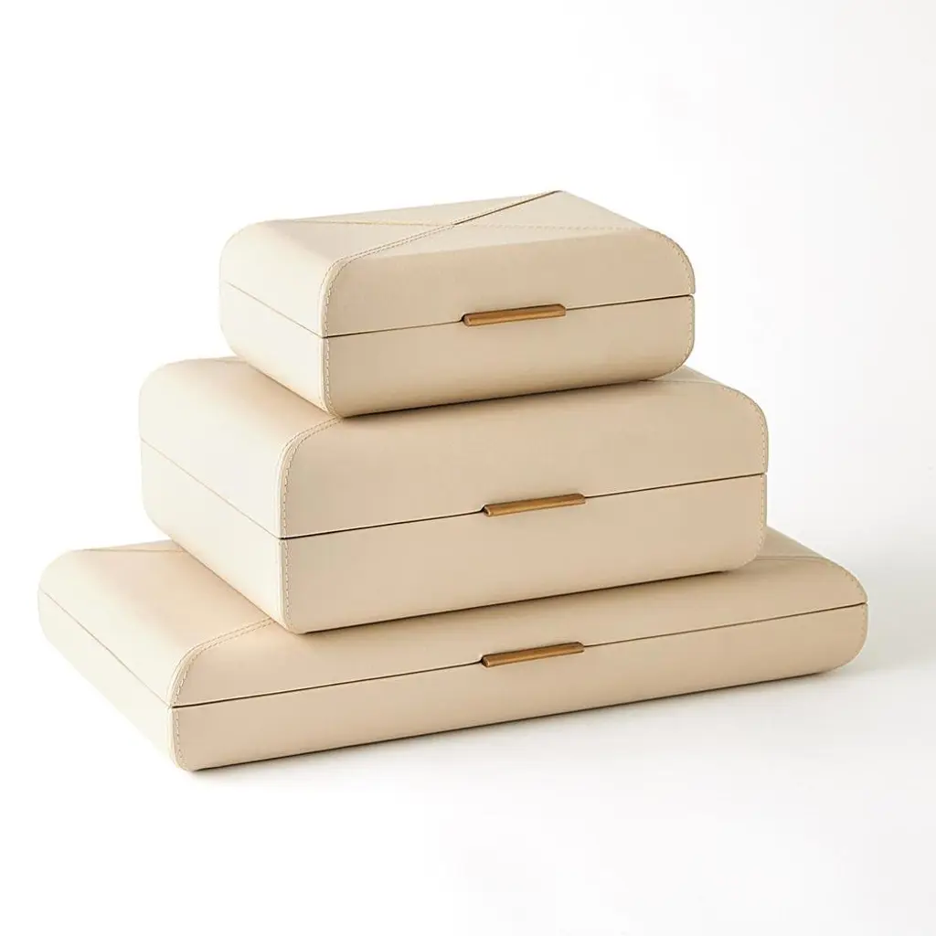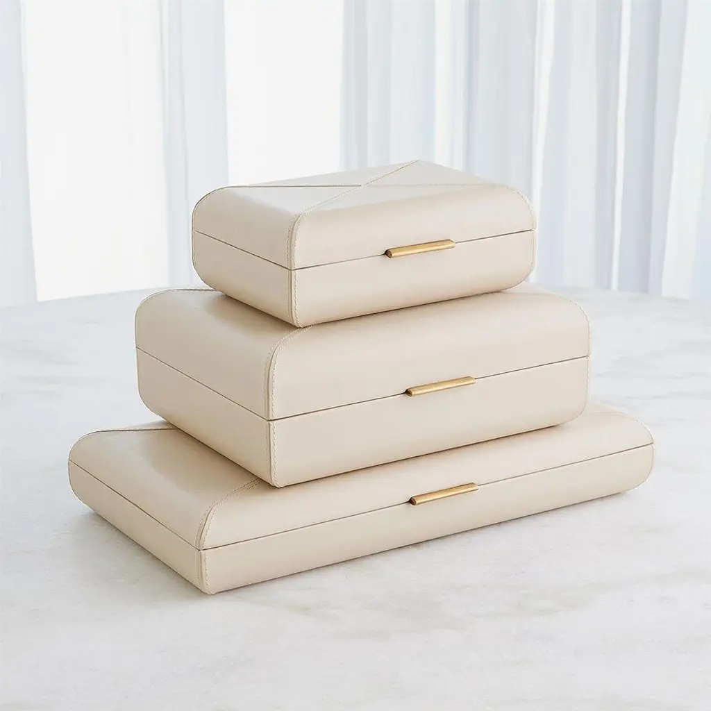 Hayes Modern Classic Beige Leather Decorative Box - Small