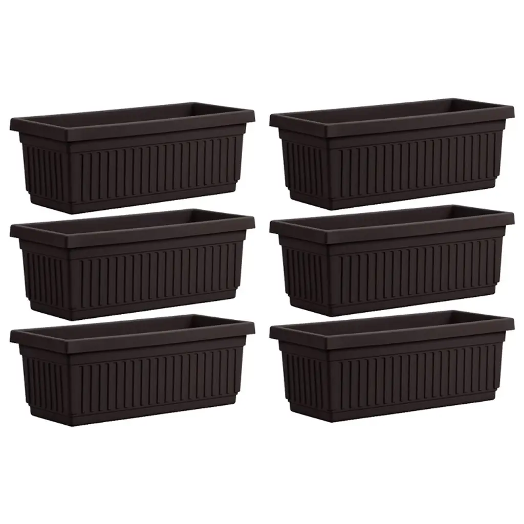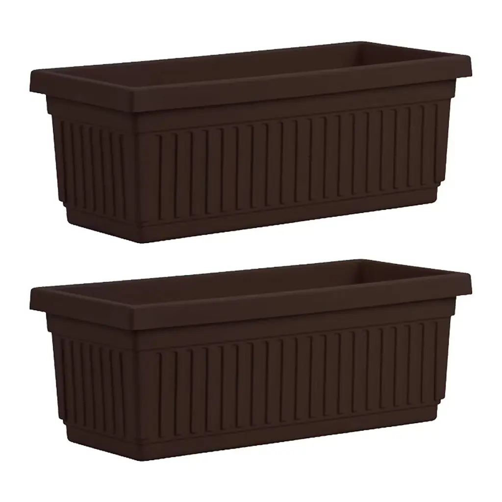 Hc Companies 12-inch Outdoor Plastic Deck Flower Planter Box, Chocolate (2 Pack)