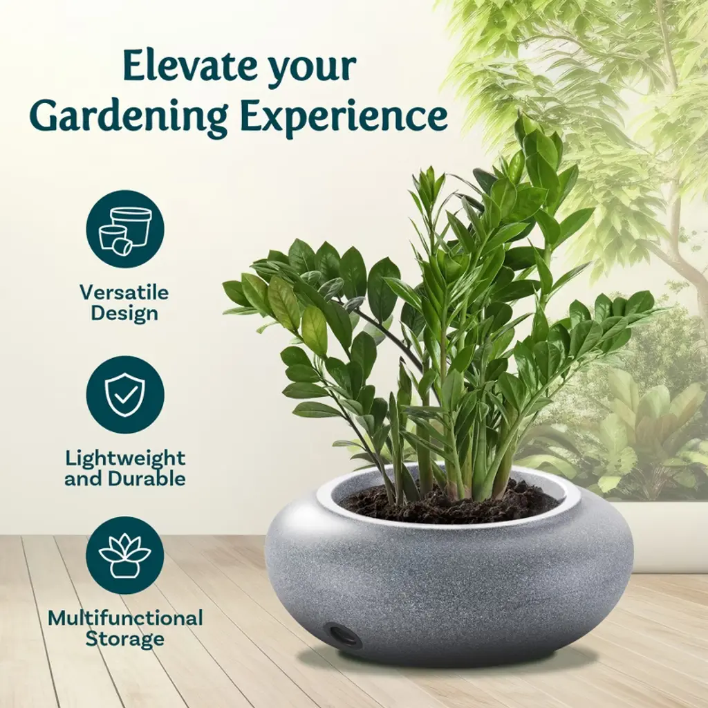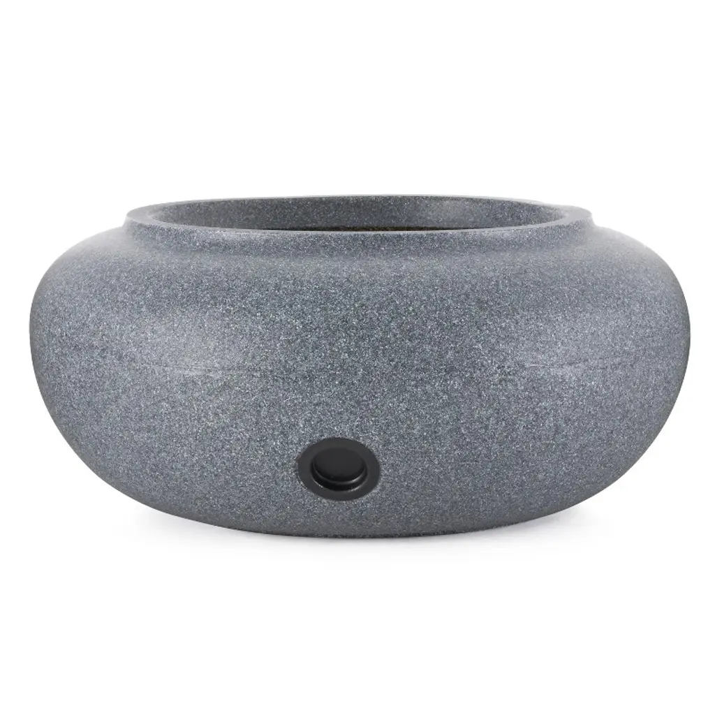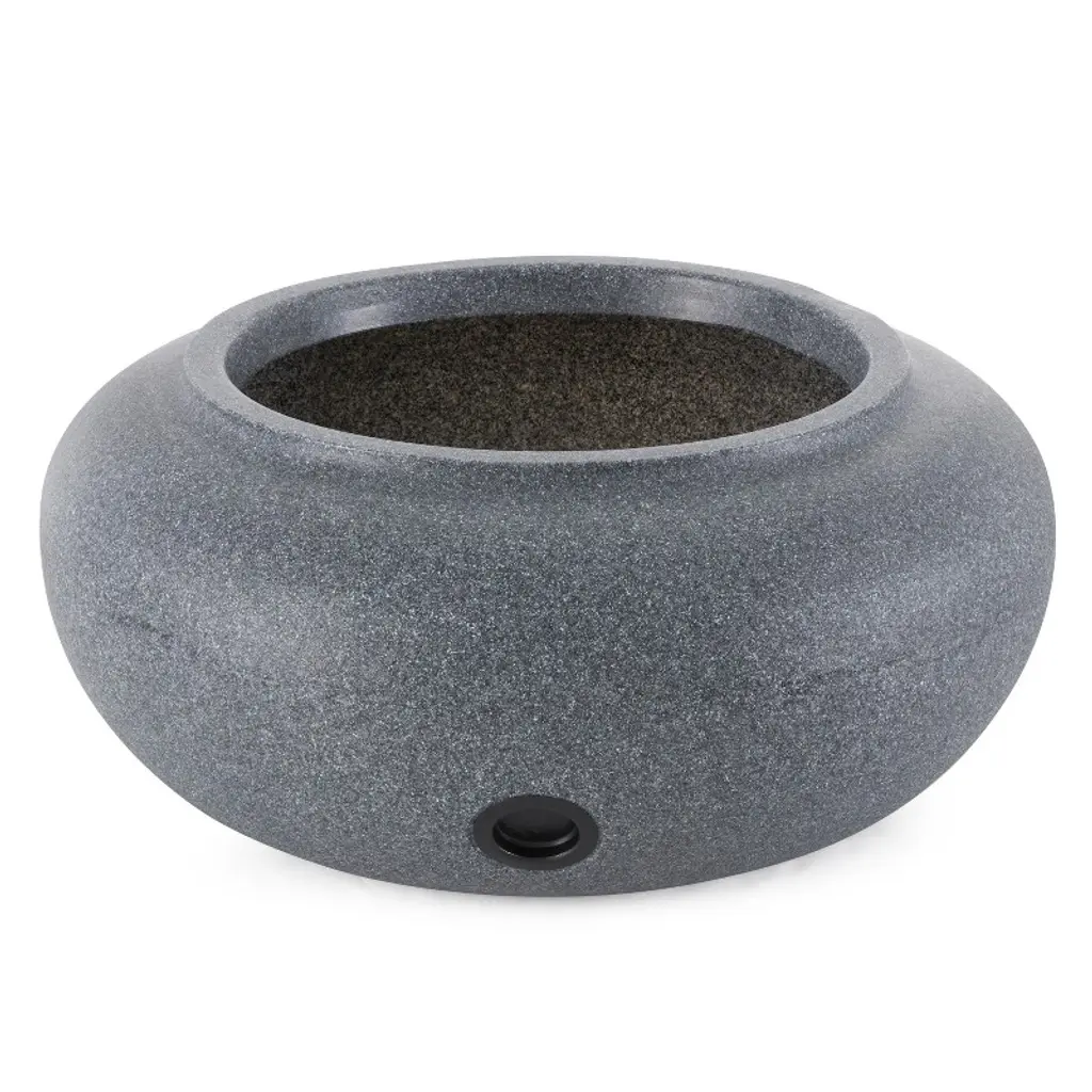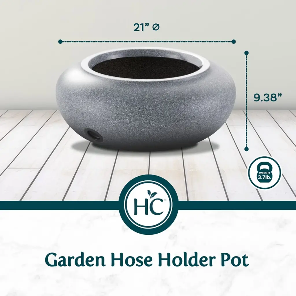 Hc Companies Versatile 21 Inch Round Natural Decorative Plastic Outdoor Garden Hose Storage Pot With Side Hole For Faucet Connection, Granite