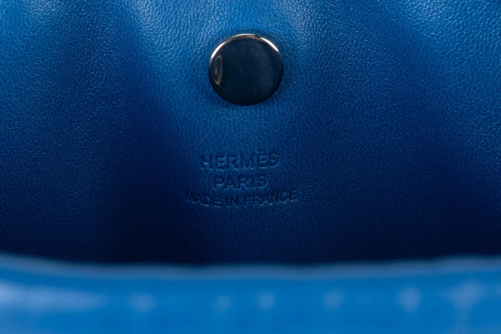 This Hermès Pilo Pouch in hand-sewn Milo lambskin and Swift calfskin with a Clou de Selle snap closure. This pouch can be attached to our straps thanks to D-rings on the back. Comes with original box. First letter W for 2025.