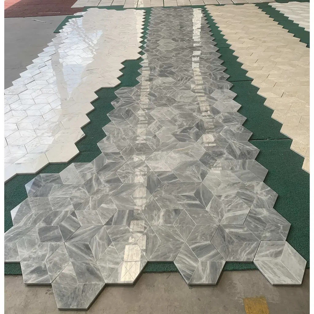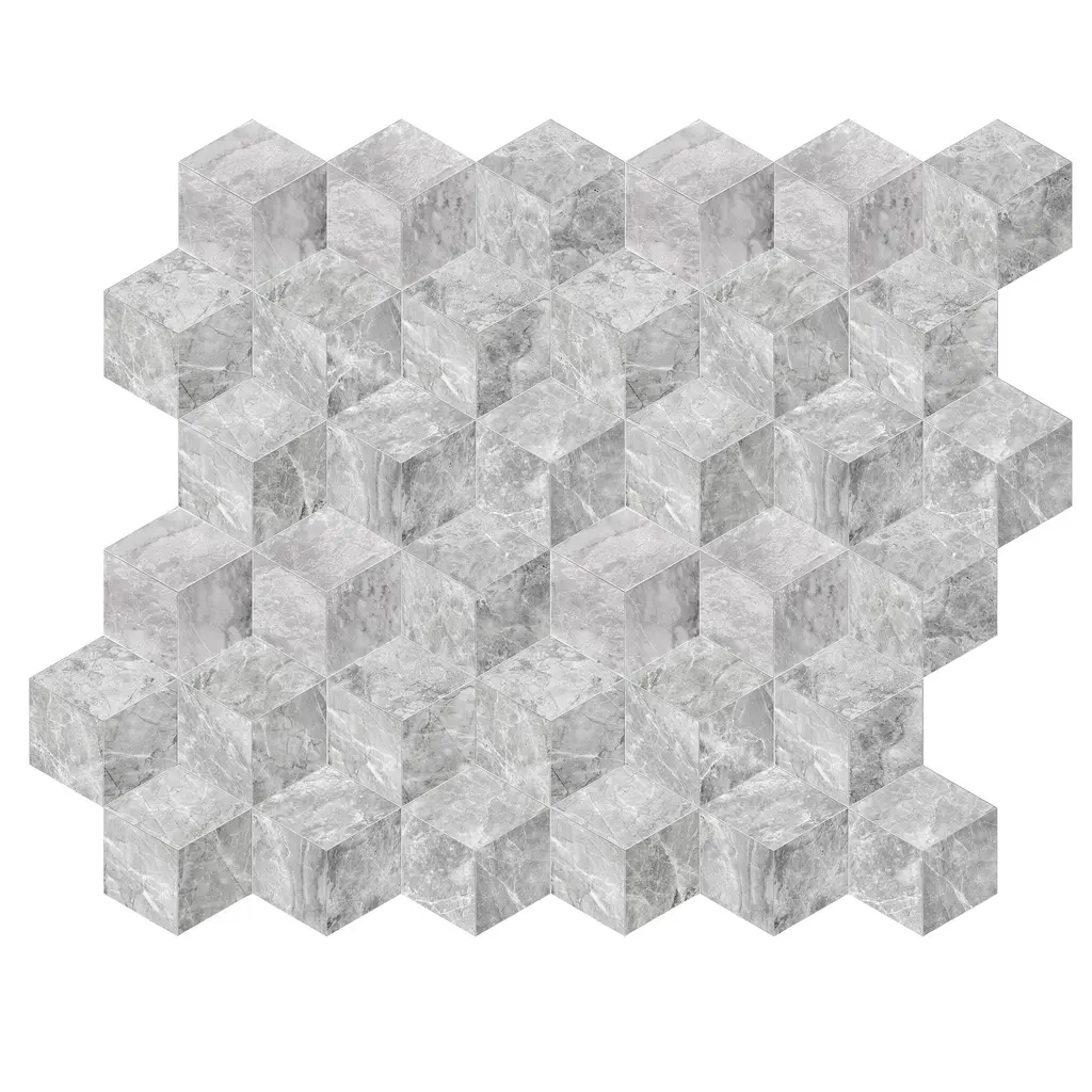 Hexagon Natural Polished Marble Tile For Wall And Floo, 1 Box 12 Pcs - Grey