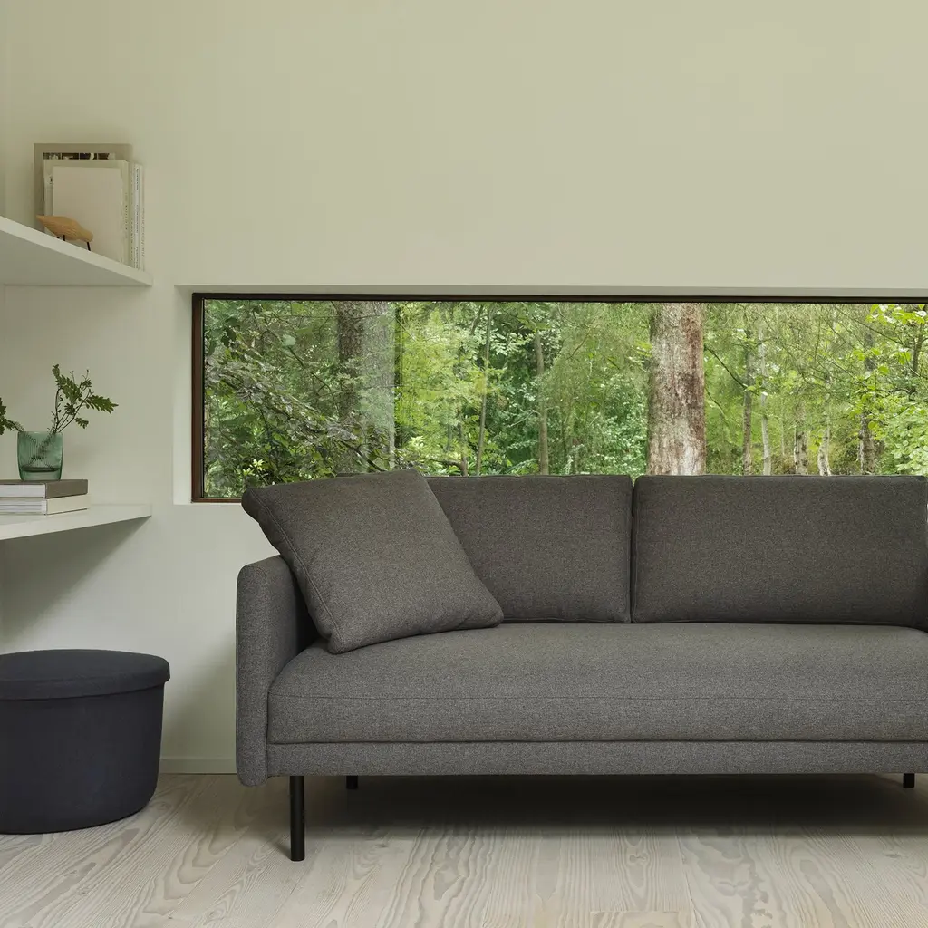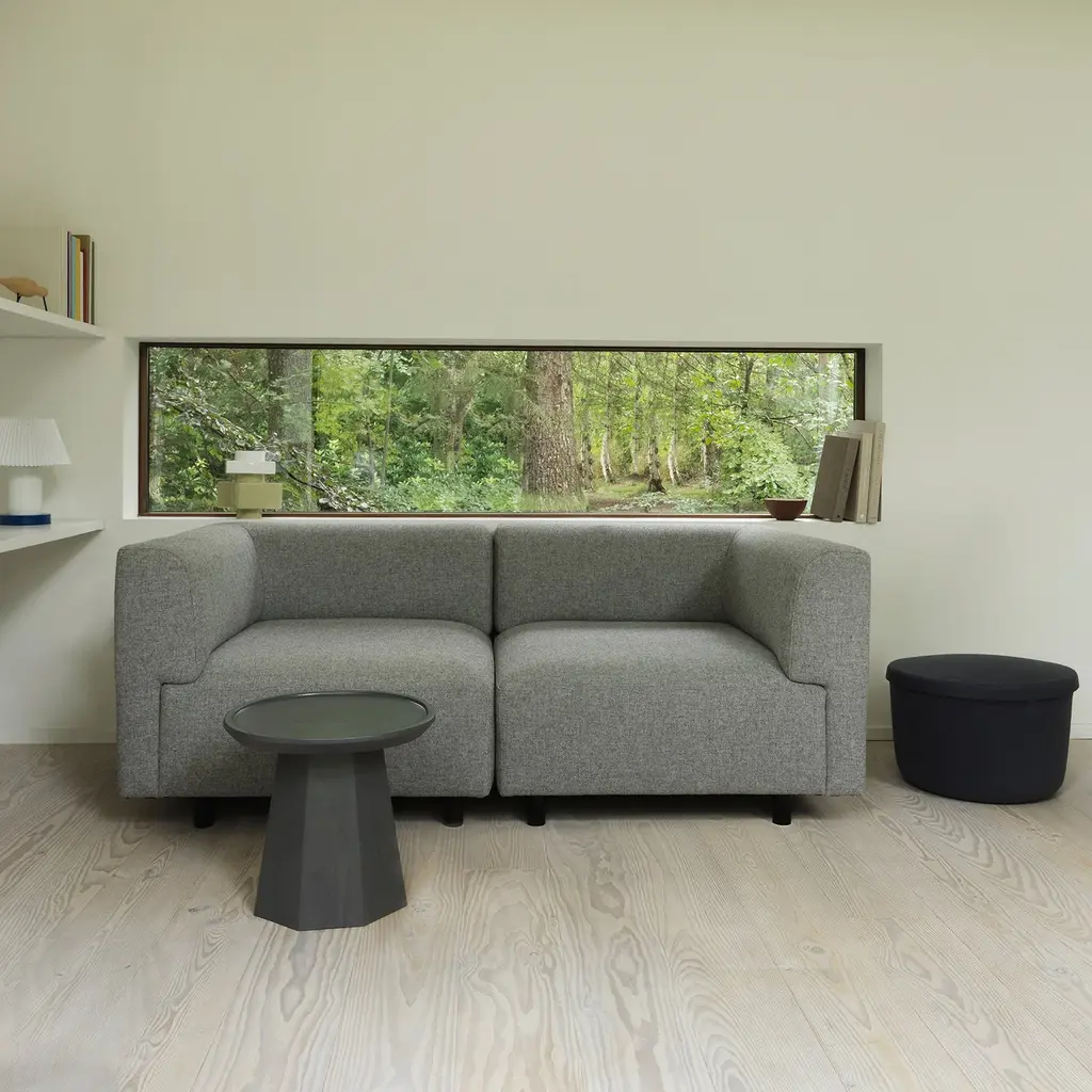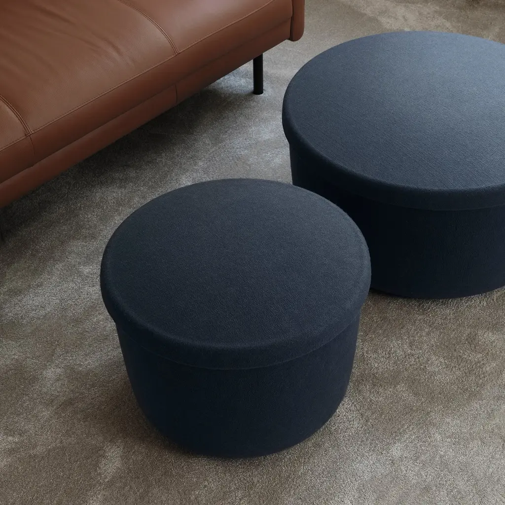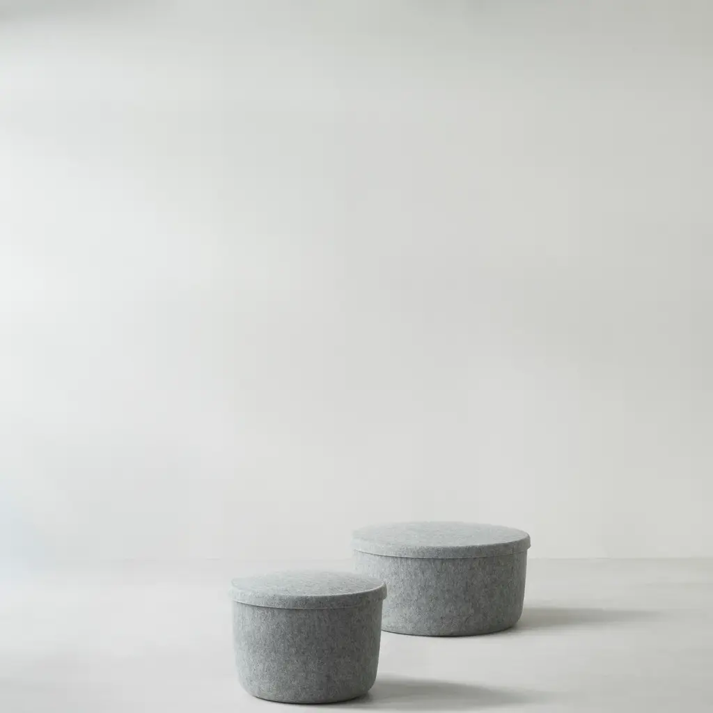 Relax, put up your feet and keep things tidy at the same time with Hide, a multipurpose pouf and storage container. Crafted from PET felt, a remarkable fabric made from recycled post-consumer plastic bottles, the top lid opens to conveniently stash things like toys, blankets and cushions while the unit also doubles as a soft table or additional seating in a pinch.