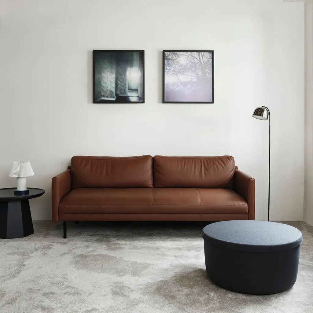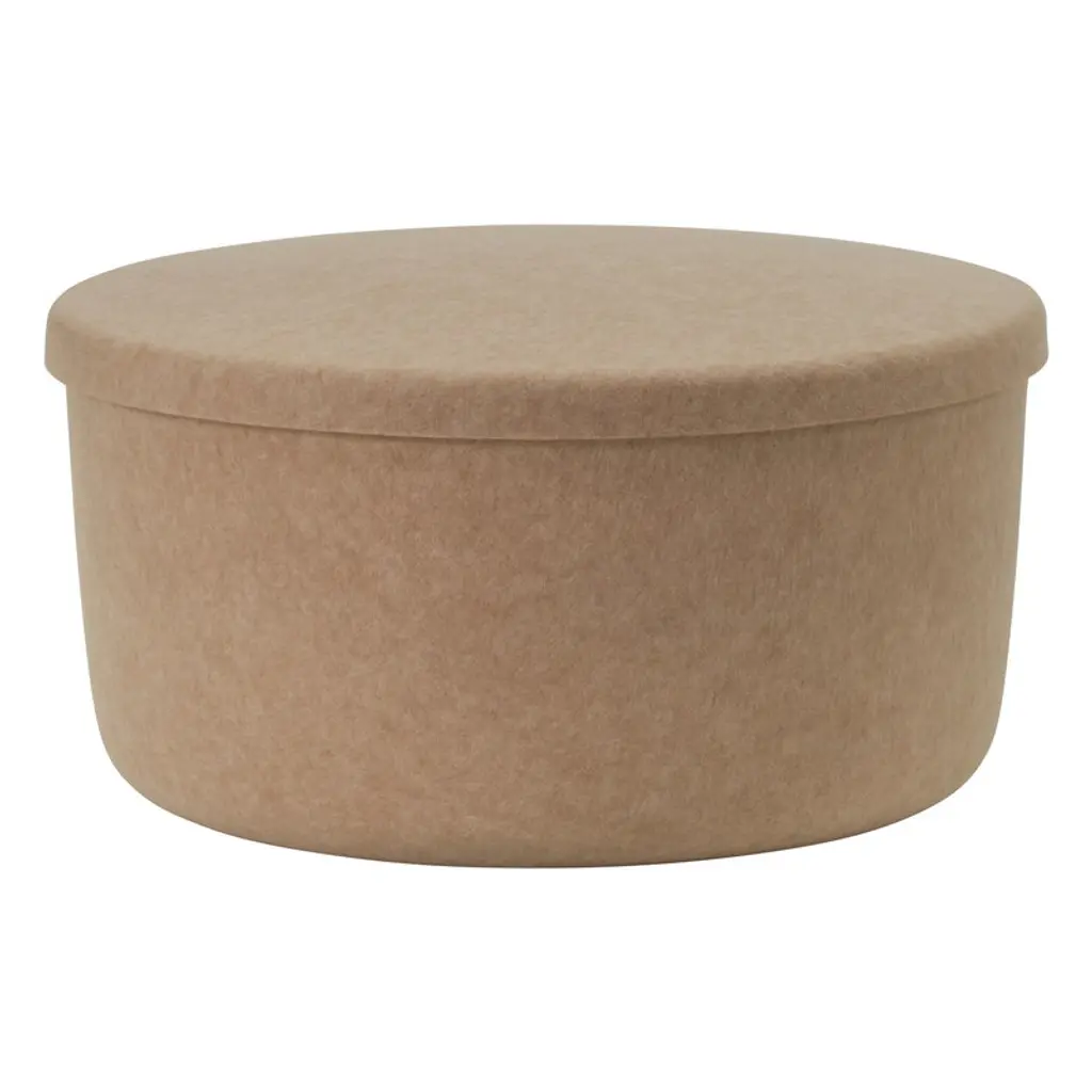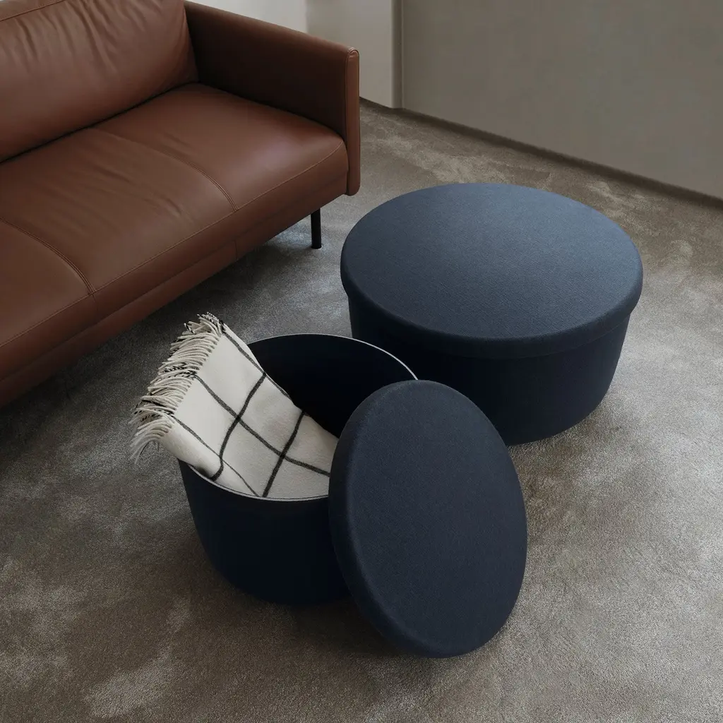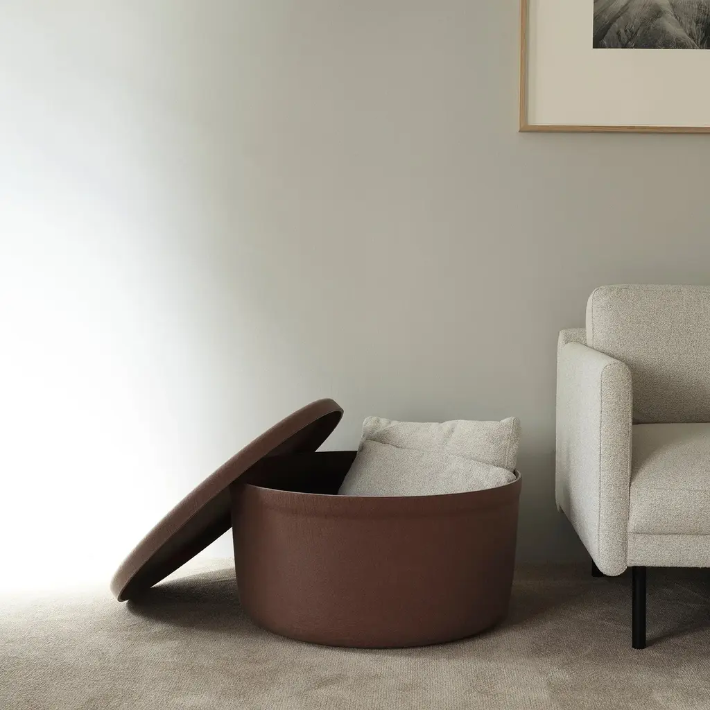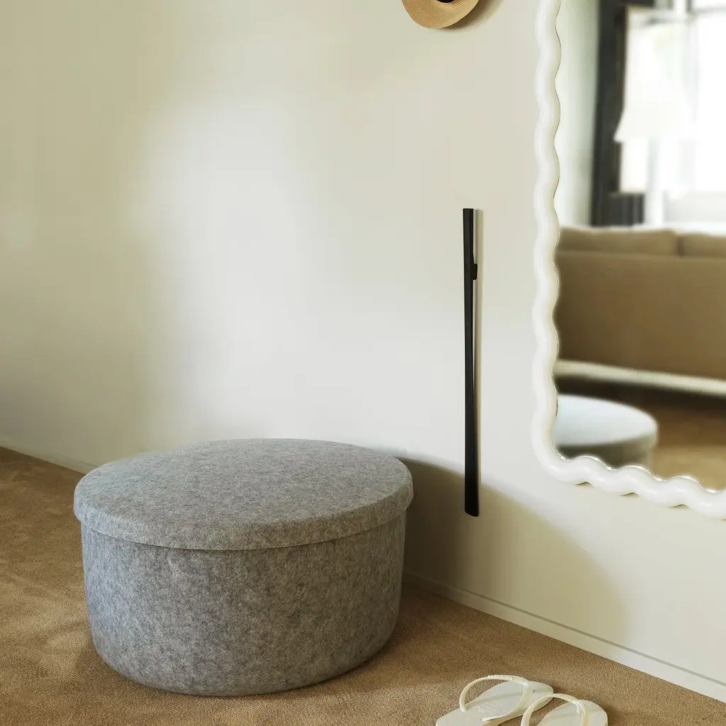 Relax, put up your feet and keep things tidy at the same time with Hide, a multipurpose pouf and storage container. Crafted from PET felt, a remarkable fabric made from recycled post-consumer plastic bottles, the top lid opens to conveniently stash things like toys, blankets and cushions while the unit also doubles as a soft table or additional seating in a pinch.