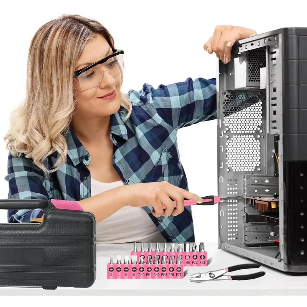 This 39-piece household tool kit includes essential tools carefully selected for everyday home and DIY projects such as furniture assembly, picture hanging, and general repairs. Each tool is made from high-quality, durable, and anti-corrosion materials, ensuring long-lasting performance. The set includes a claw hammer, screwdriver bits and driver, bit holder, hex keys, precision screwdrivers, slip joint plier, tape measure, utility knife, and scissors — everything you need for daily maintenance and small projects. Ideal for use in the house, garage, garden, or car, this versatile home repair tool set is also a thoughtful gift for friends and family. The portable, lightweight toolbox keeps all tools neatly organized and easy to find, featuring a sturdy handle for convenient storage and transport wherever you go.