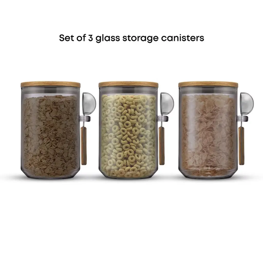 Scoop, store, repeat. These sleek glass canisters keep your everyday essentials fresh and ready—with matching scoops that slip right into place. Coffee, sugar, oatmeal? Go ahead, make it make sense (your way).