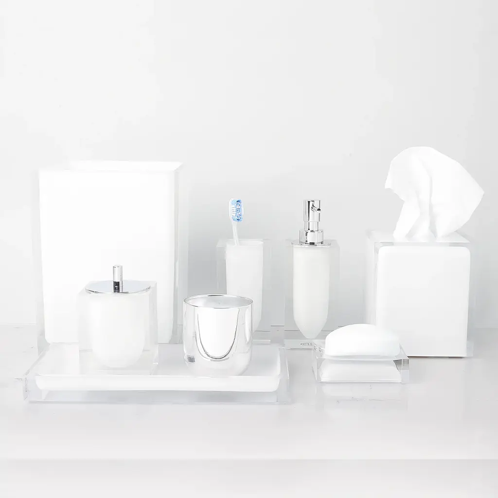 A-List Loo. Woo your loo with luxe accessories fit for a film star. Crafted from thick, hand-poured acrylic and featuring frosted white interiors for added dimension, our Hollywood collection always gives a starring-role performance. The perfect picks to perk up your power room or elevate your en suite from floor to counter. This piece is also available as a set—shop Better Together Bundles and save.