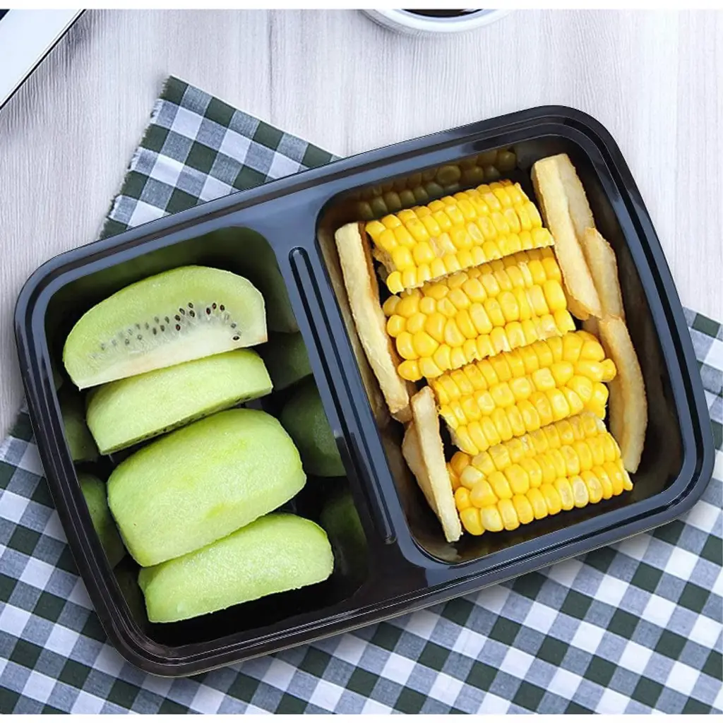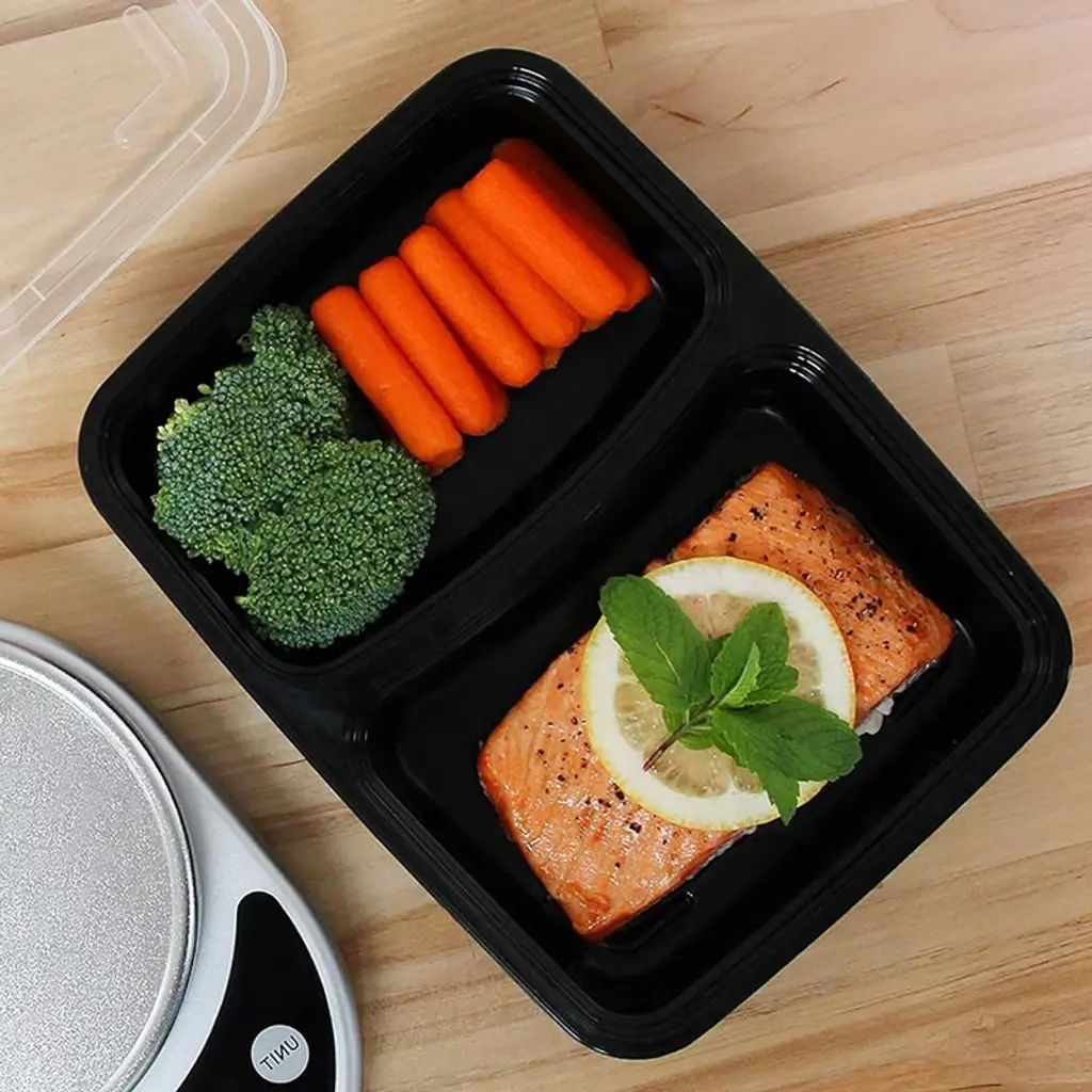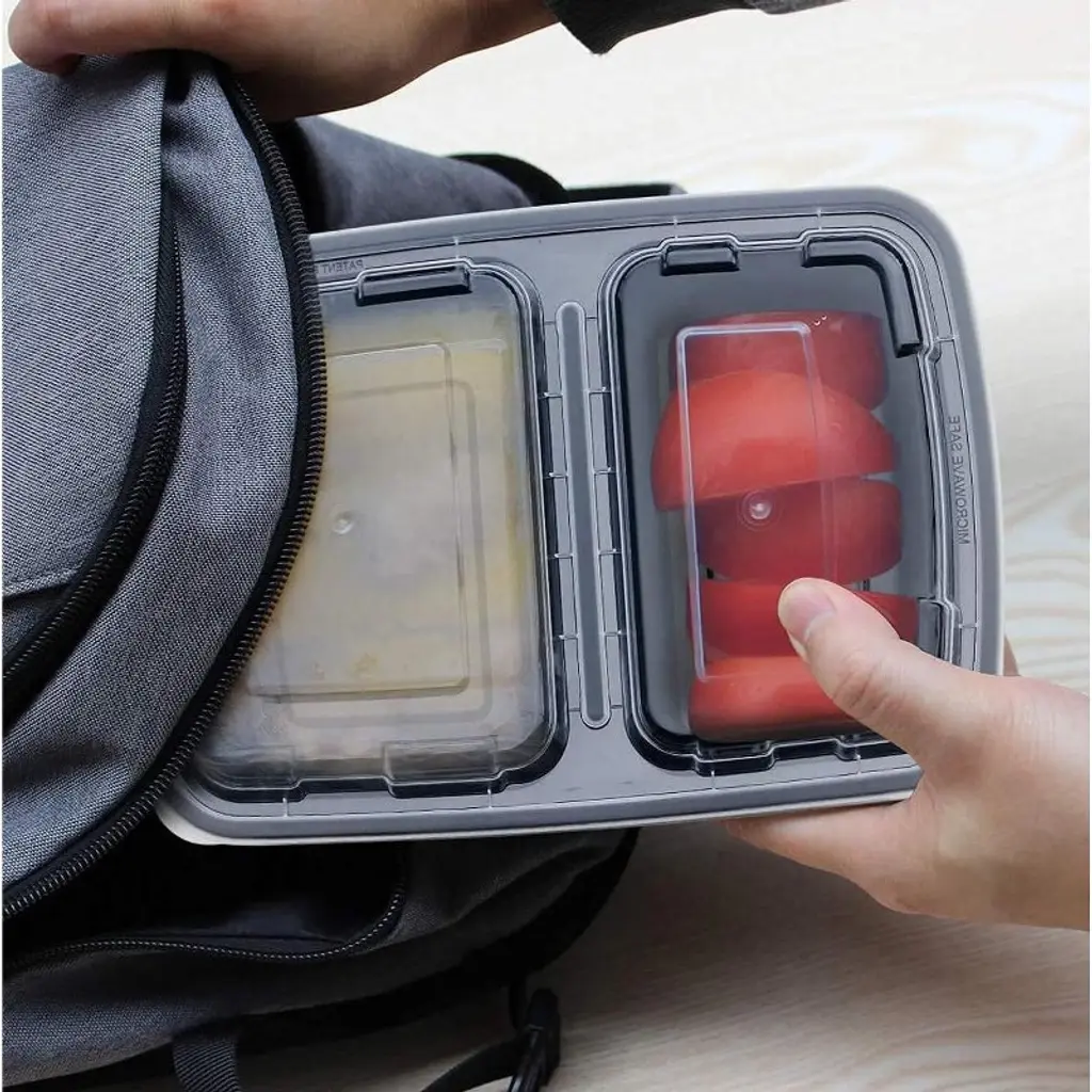 Our exclusive food prep containers are made of the highest quality plastic material that is safe to use. Its sturdy design is built to withstand heat from microwave. Simplify your weekly meal planning with our comprehensive set of 10, portion control 28z meal prep containers. Our convenient and versatile 2 compartment meal prep containers are designed to serve the perfect portion you need to carry your meals. Our exclusive food prep containers are made of the highest quality plastic material that is safe to use. Its sturdy design is built to withstand heat from microwave Our food storage containers feature airtight lids to safeguard your food against spoilage and prevent fridge odors from tainting your meals. Microwave, dishwasher, and freezer safe, our meal prep containers are crafted from premium food-safe BPA-Free plastic materials.