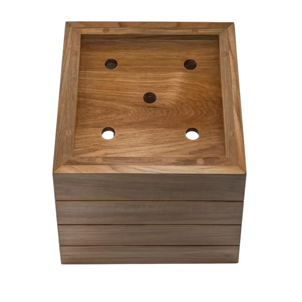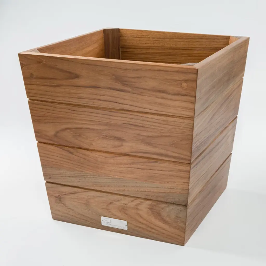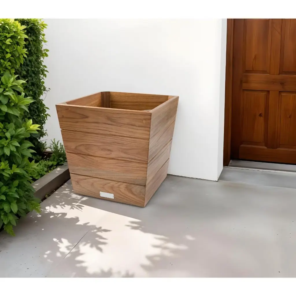 Plant your favorite flowers, vegetables, or herbs in this 12-inch brown wood indoor outdoor square planter box that will complement the decor of any outdoor area. Weather is unpredictable, which is why this planter is intentionally made with hearty solid teak wood , that has naturally inherent properties to keep it looking good and to withstand a variety of outdoor conditions. The practical, straight-edged shape of this planter is perfect to add clean lines and good looks to your backyard. Not only is this planter beautiful, but it also includes drainage holes to help keep your plants healthy. This planter is the perfect way to add instant style to your outdoor space. 12-inch H x 12-inch W x 12-inch D