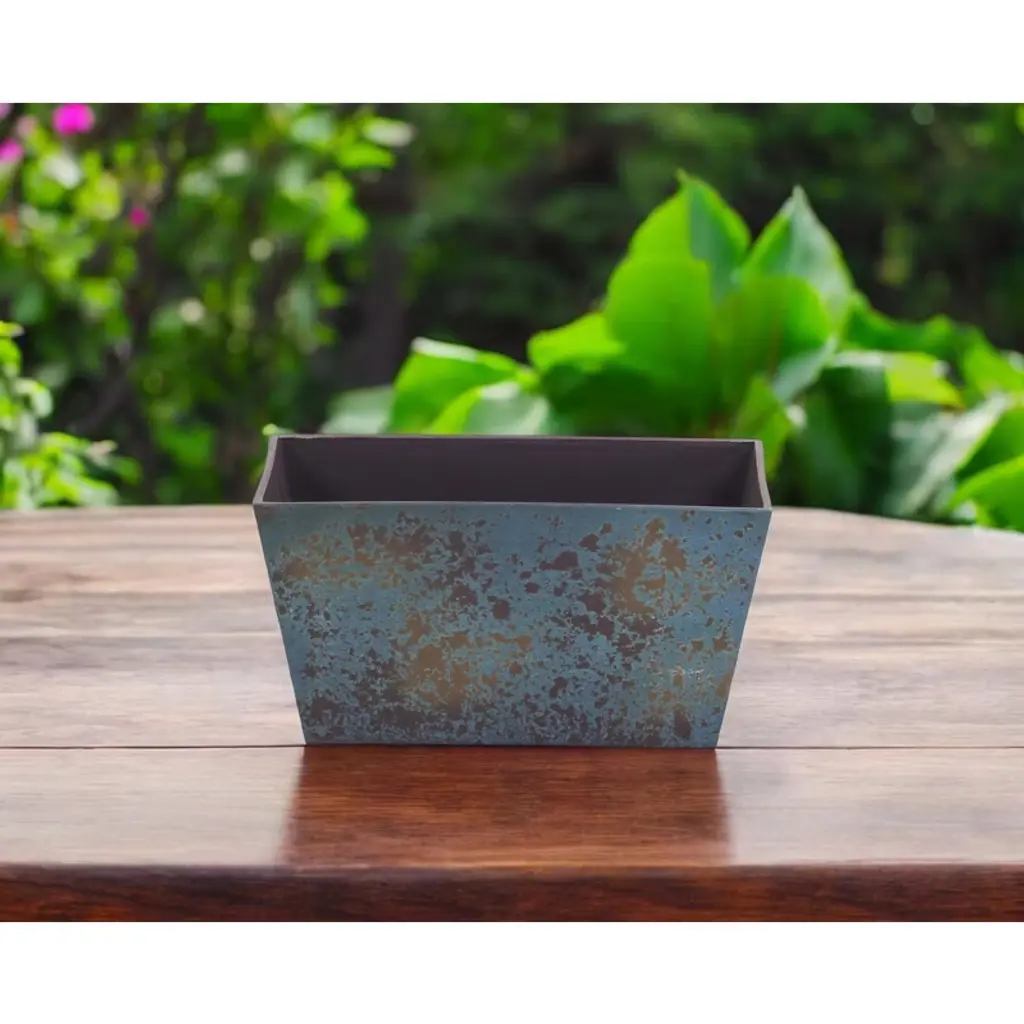 Homeroots 8" Blue Recycled Plastic Indoor Outdoor Rectangular Planter Box