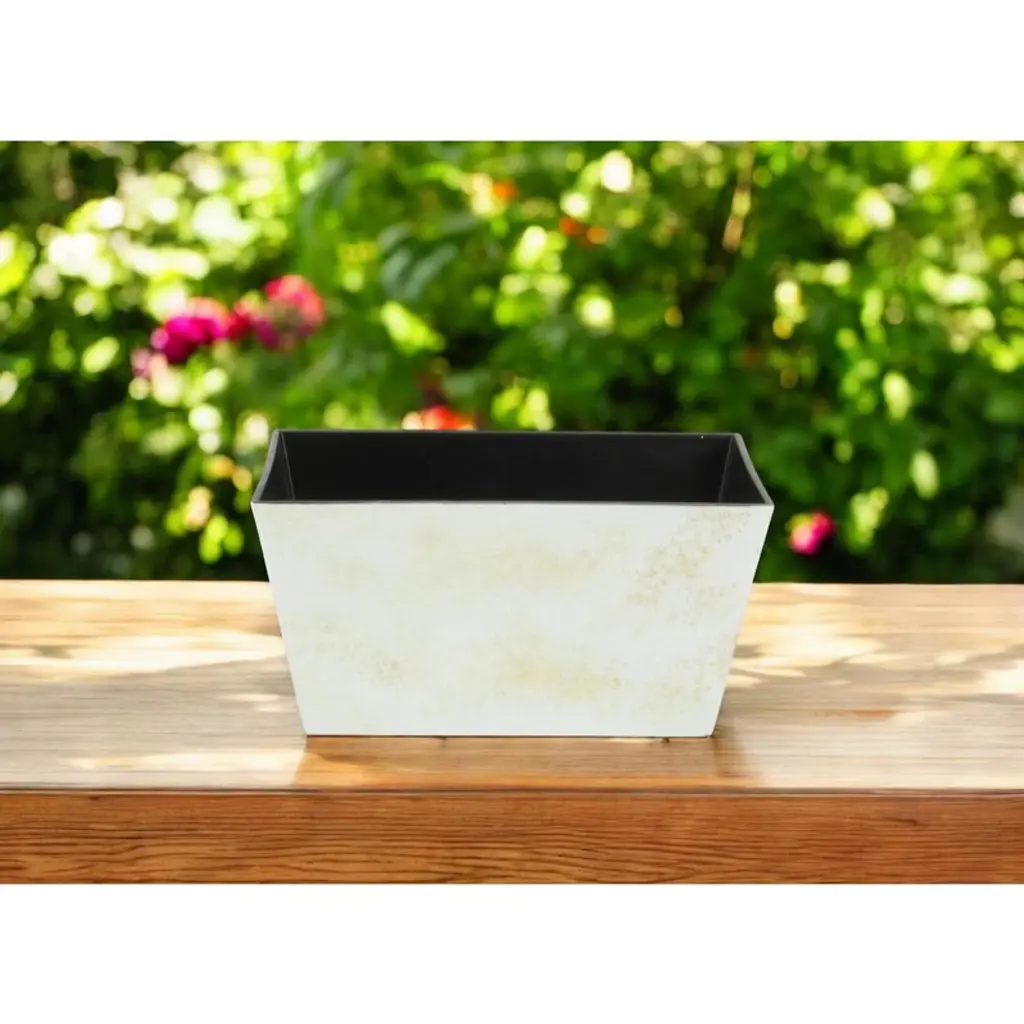 Homeroots 8" Cream Recycled Plastic Indoor Outdoor Rectangular Planter Box