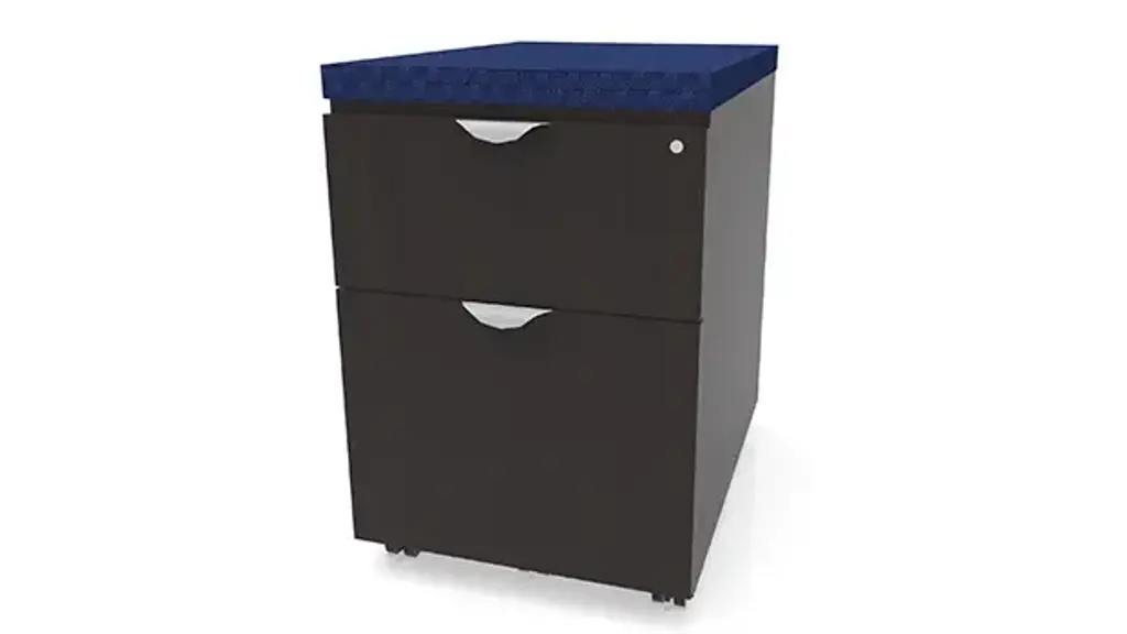 2 drawer box / file mobile pedestal with cushion seat top has a durable laminate finish in addition to the comfortable top. High-impact 3 mil Tough Edge is standard on all tops and end panels. It's strength and durability helps protect the edge from scratches, chips and dents. Low mobile cabinet can be stored under your desk and pulled out when you need additional seating. Features 1 box drawer and 1 file drawer. File drawer accommodates letter and legal size files. Available in several laminate finishes. Choose from 2 top cushion fabrics. Ships fully assembled.