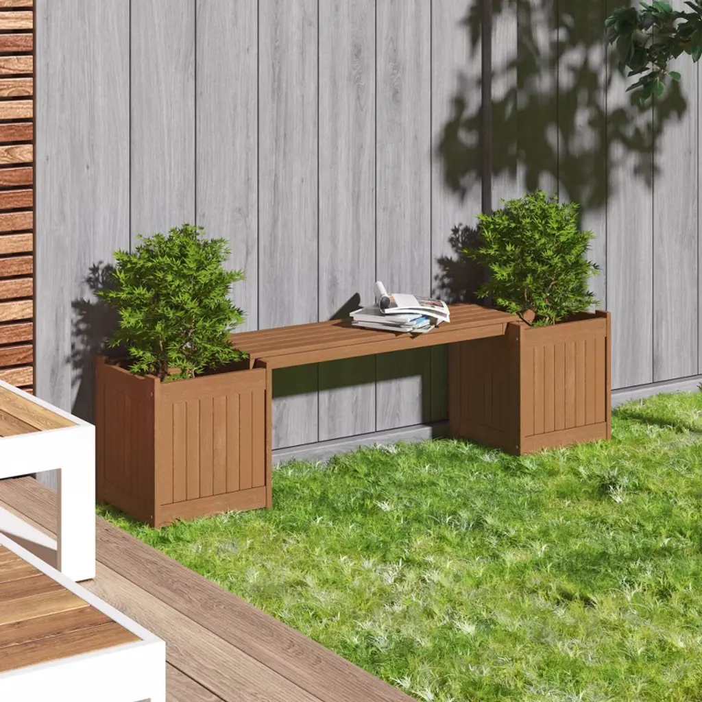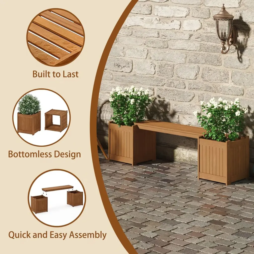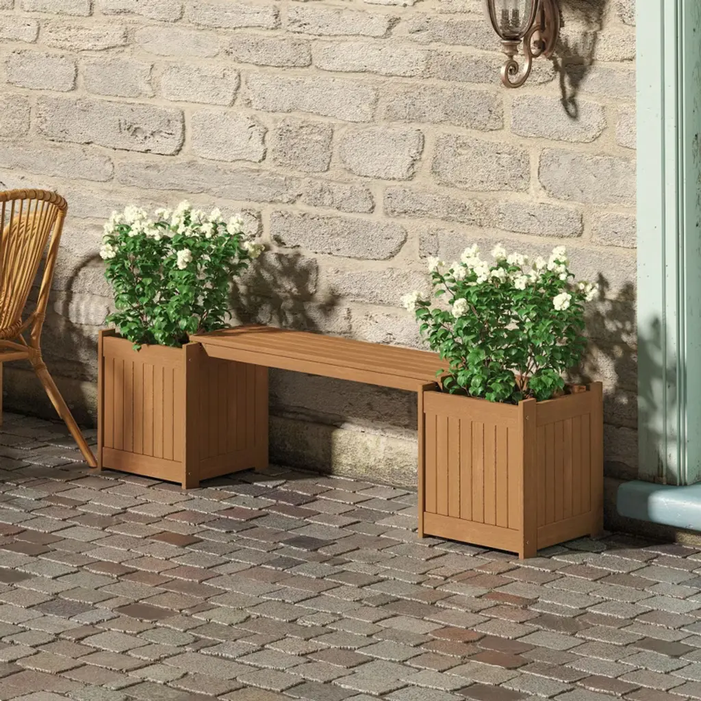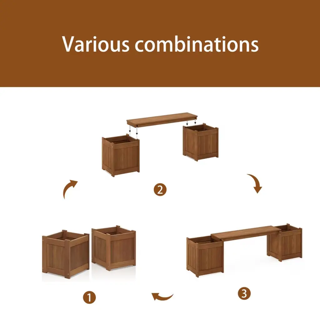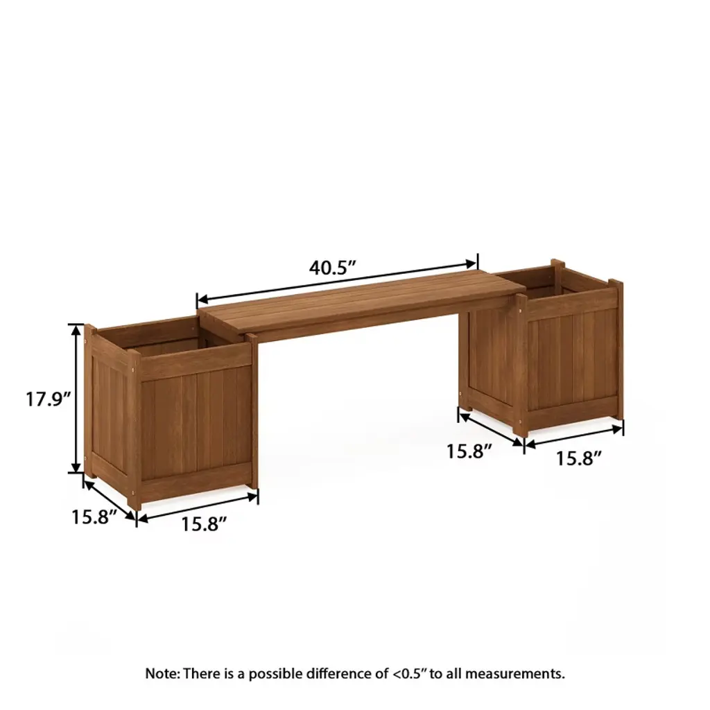 Homlux Hardwood Outdoor Plants Stand With Detachable Bench 2 Planter Boxes