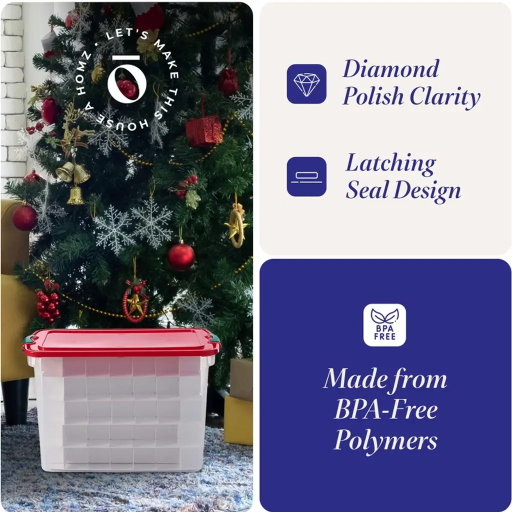 Homz 112-quart Holiday Clear Plastic Ornament Storage, Red/green, 2 Pack