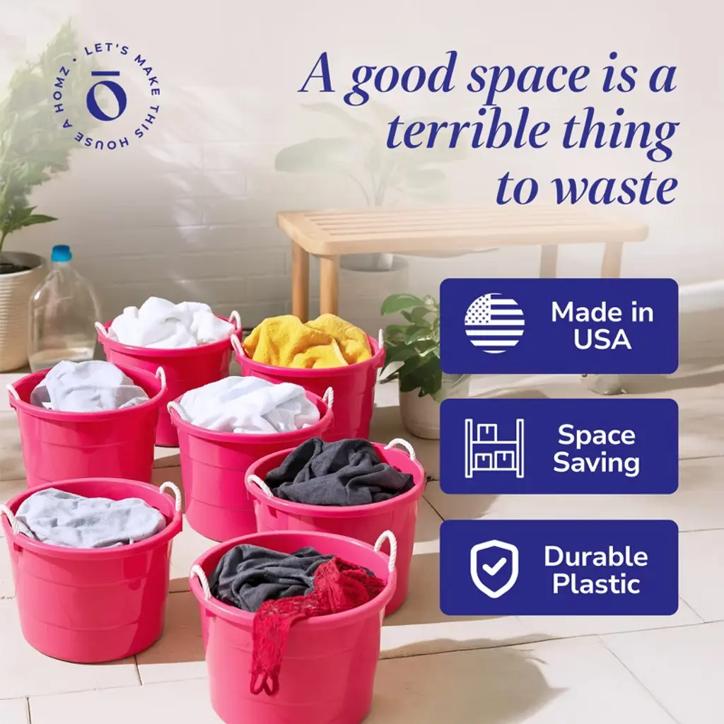 Homz Rope-handle 18-gallon Open Storage Tubs, Plastic Buckets, Pink, 6 Pack