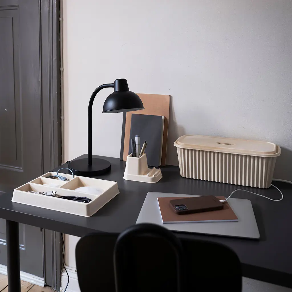 HÖNSNÄT Cable management box - natural 15x7x5 ½ ". The box helps you gather and hide cables, chargers and power strips on the desk or floor, to create an organized and clutter-free space. Big enough to hold two KOPPLA sockets with a max. length of 30 cm.