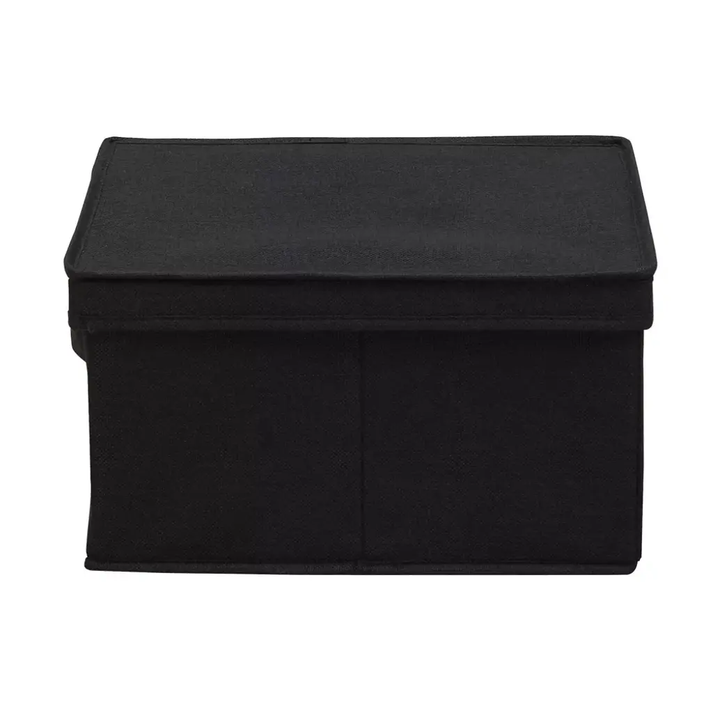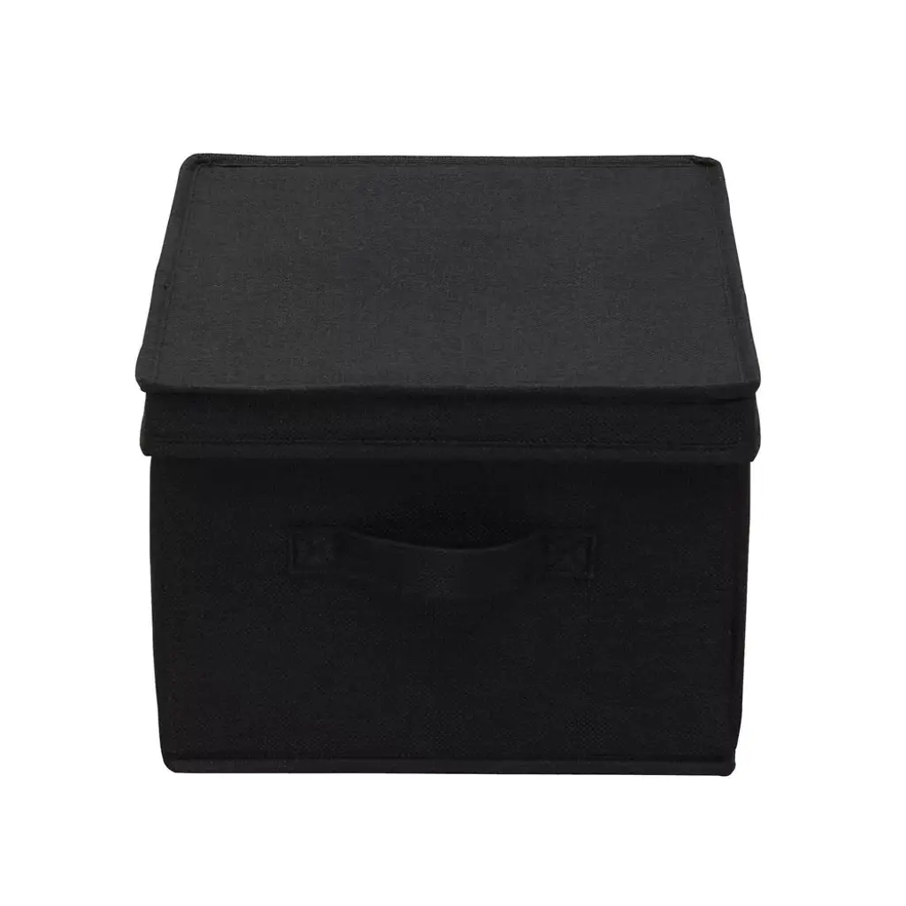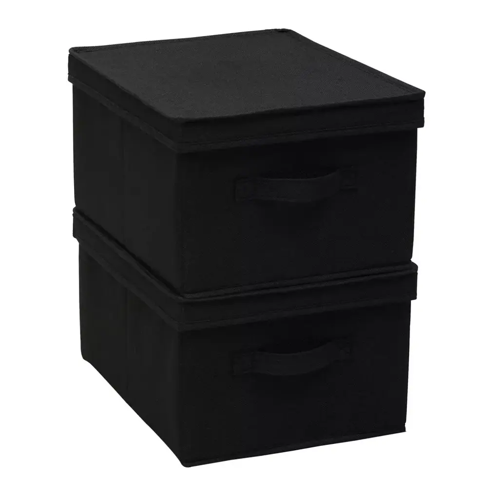 Household Essentials Set Of 2 Large Storage Boxes With Lids Black Linen: Polyester, Stackable, Folds Flat, Spot Clean