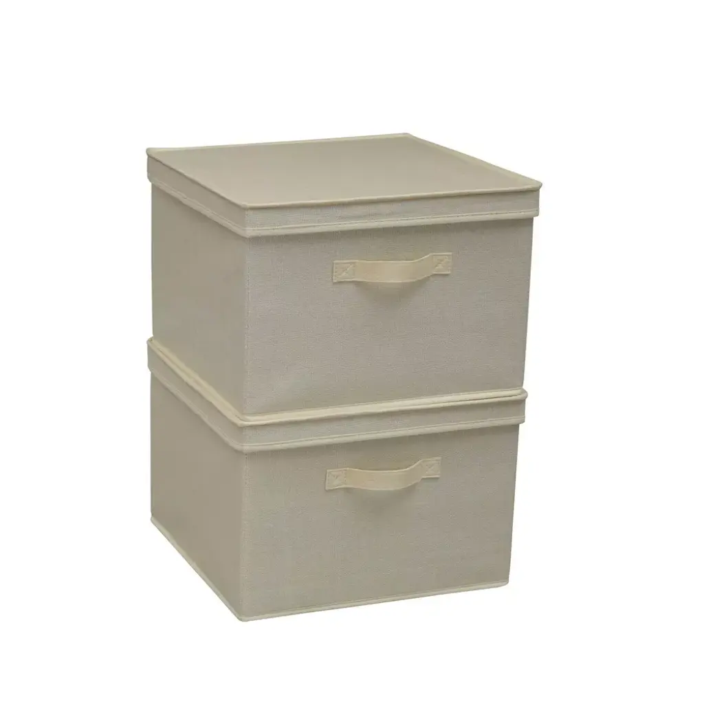 Household Essentials Set Of 2 Square Storage Boxes With Lids Cream Linen: Decorative, Stackable, Polyester, 15"x15"x15"