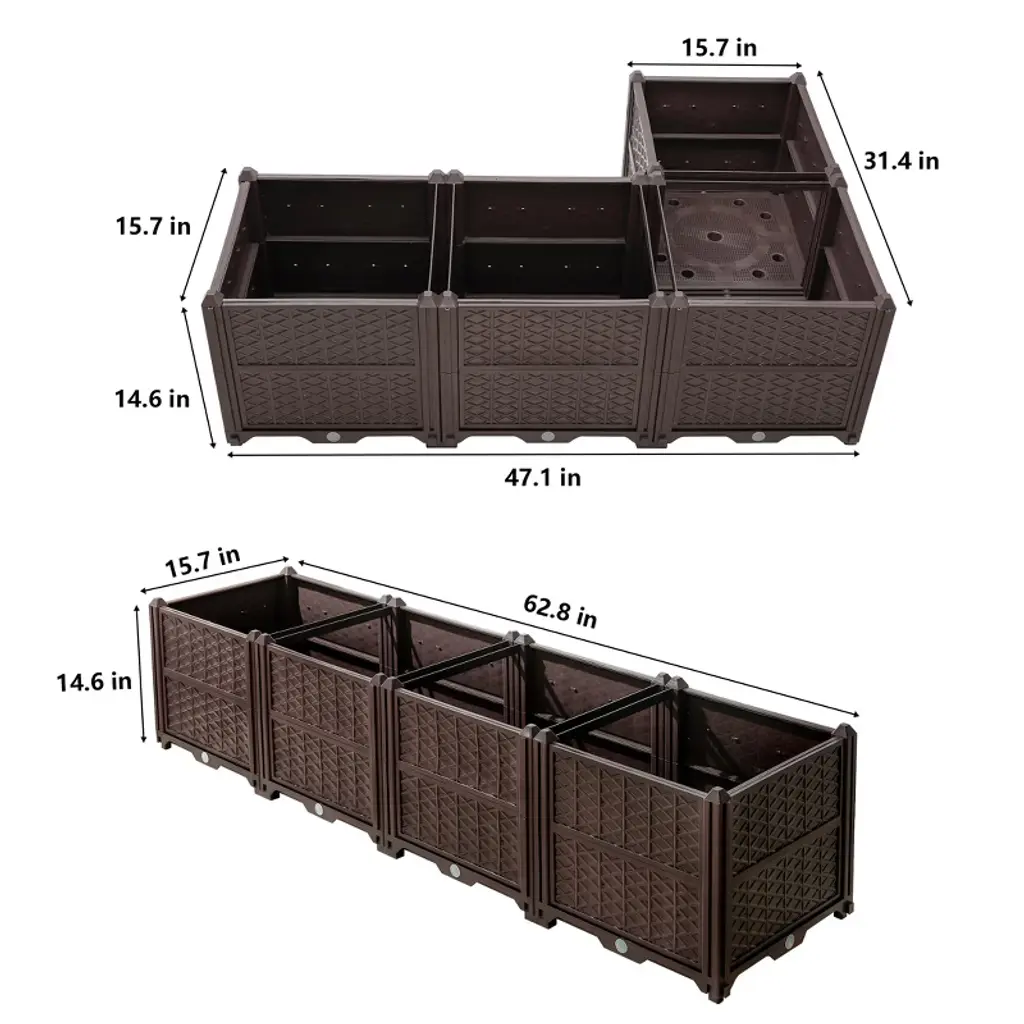 Hrinhom 62.8"w Rectangular Plastic Planting Box, Assemblable Planting Kit