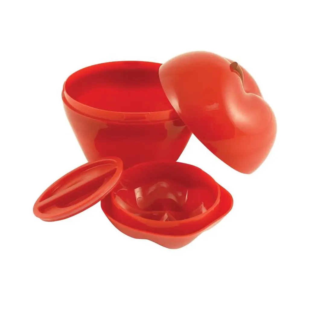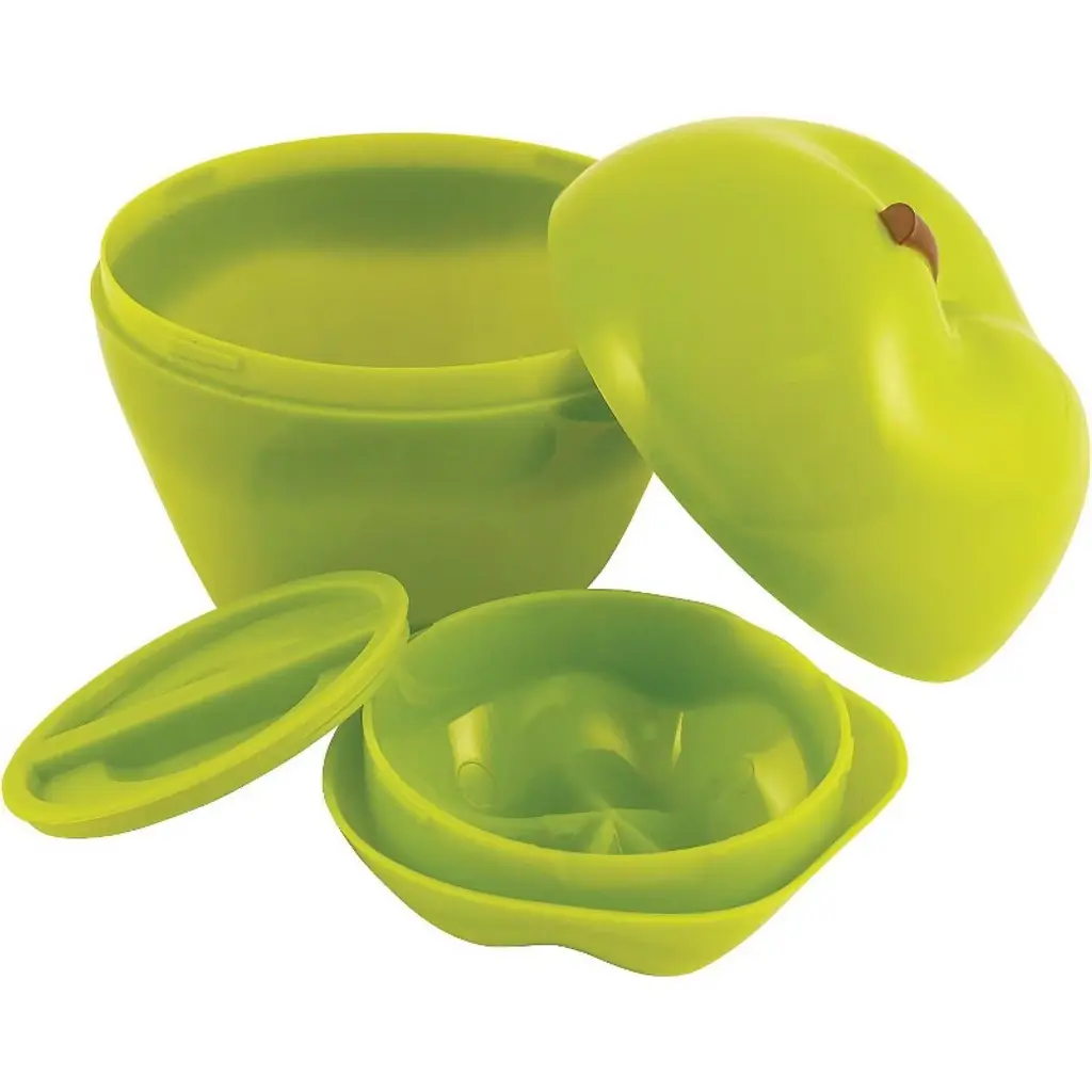 Healthy Eating On-the-Go...Office, School, Travel.Carry apple slices along with your favorite dipping sauce such as peanut butter or caramel sauce. Includes Apple container, Apple Lid, Dip container, and Dip lid. All pieces attach together.BPA Free, Dishwasher Safe, Reusable, and Recyclable. Measures 4.25 x 4.25 x 5 inches.