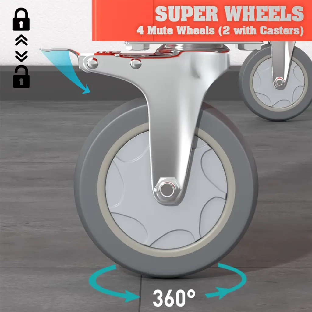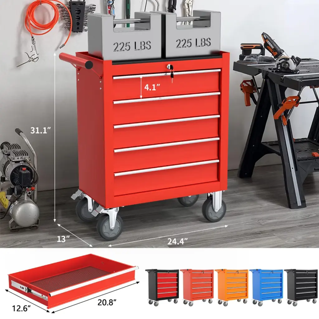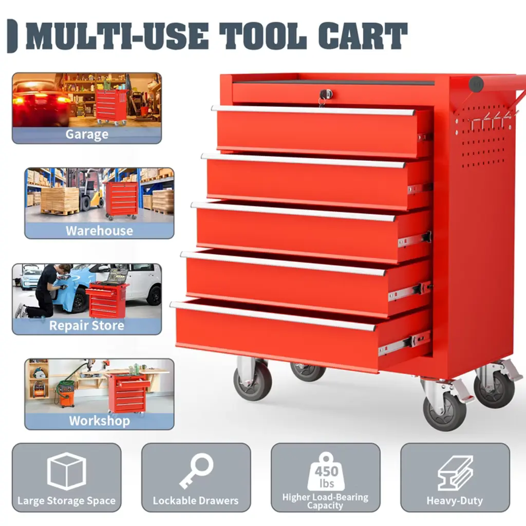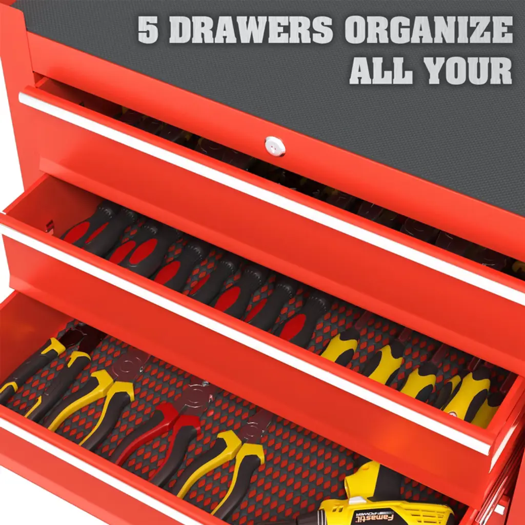 Huxxion 5-drawer Heavy Duty Rolling Tool Chest Tool Storage Box-red