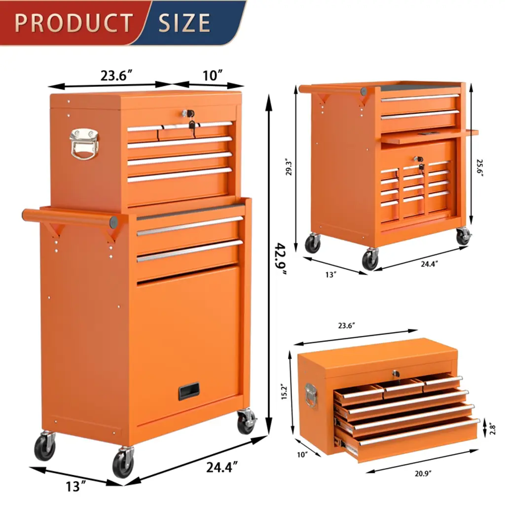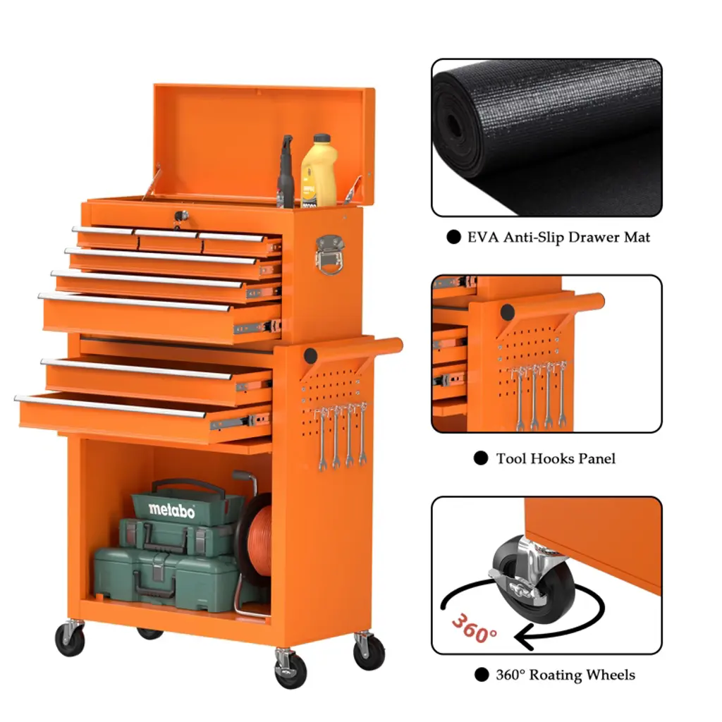 Huxxion 8-drawer Rolling Tool Box, Lockable Rolling Tool Chest With Wheels
