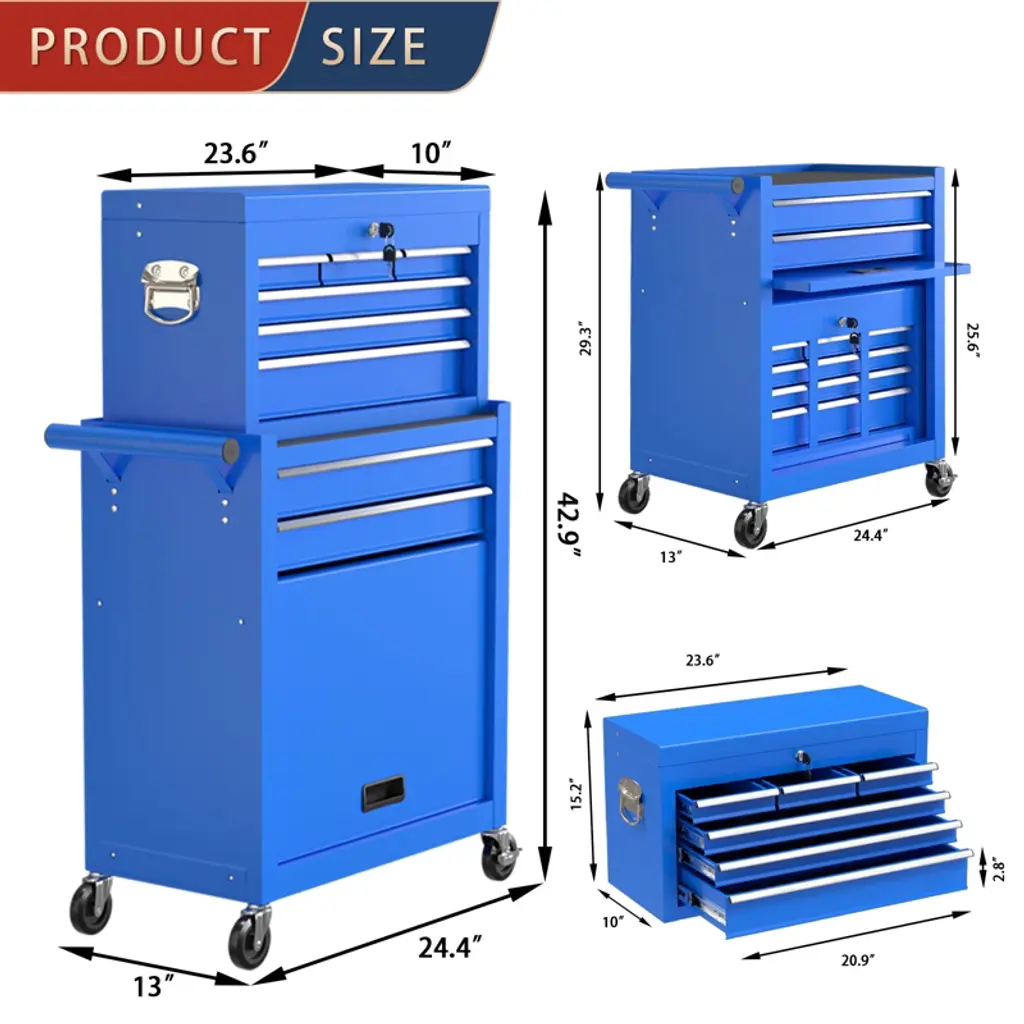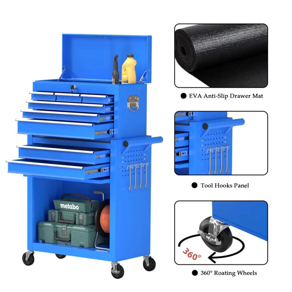 Huxxion 8-drawer Rolling Tool Box, Lockable Rolling Tool Chest With Wheels