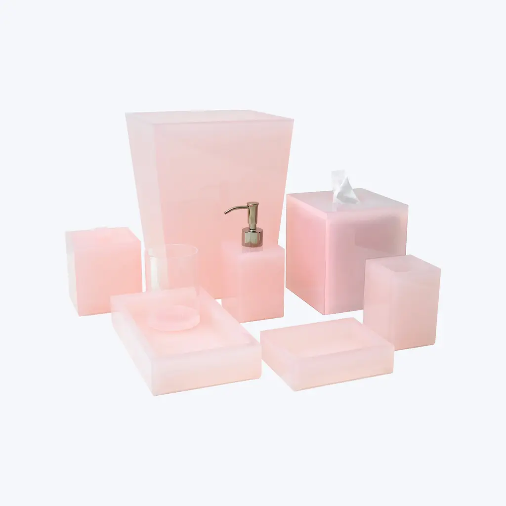 This assortment of neutral contemporary bath accessories features a clean and modern sandblasted blue frost-finished profile. Suitable for humid environments and are anti-bacterial and stain resistant. Hand cut, assembled, and polished. Mike + Ally has been filling boutique hotels, luxury residences, and elevated estates around the world with bespoke bathroom accessories since 1991. Handmade in New York City, these luxury bathroom accessories are created by hand to ensure high-quality for many years to come.