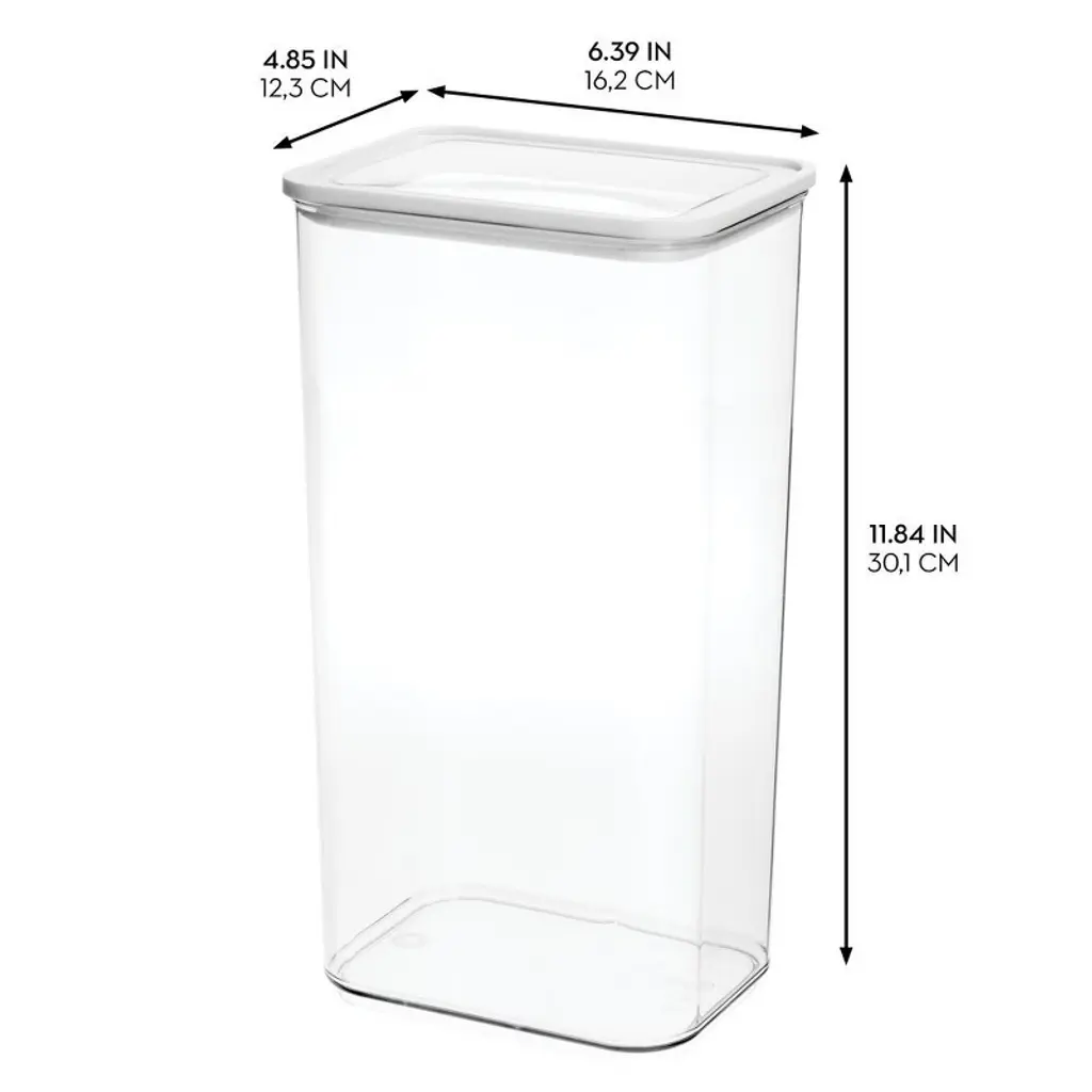 Create a system of order and enjoy a modern presentation for dry goods with the iDesign Extra Large Kitchen Canister with a Peel 'N Place Label. The easy, lift-off lid features an airtight seal to keep contents fresh, while the transparent container elegantly decants flour, sugar, rice, and other pantry staples for display-worthy storage. This food-safe canister includes a white repositionable, easy-peel label, turning an otherwise ordinary canister into a writable canvas for quick and easy identification of your belongings. Compatible with dry-erase markers (sold separately), our Peel 'N Place labels allow you to create and maintain a great labeling system for dry goods and snacks, and with a single wipe, enjoy the freedom to label contents again and again. With iDesign, you can live simply every day.