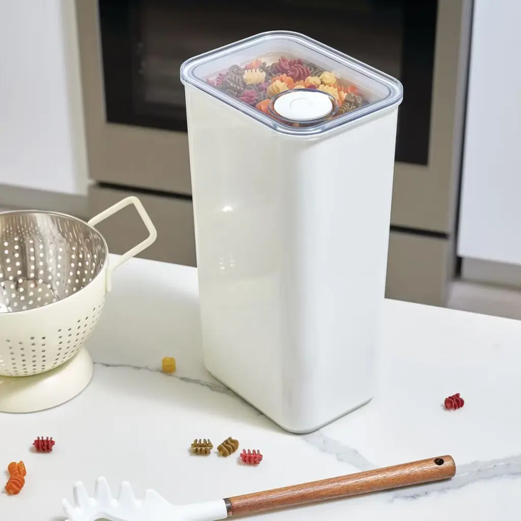 Experience the joy of always finding what you need every time you open the pantry with the iDesign Eco System Airtight Kitchen Canister. The easy, lift-off lid features an airtight seal to keep contents fresh, while the transparent container elegantly decants flour, sugar, rice, and other pantry staples for easy identification and display-worthy storage. This food-safe canister includes a removable pour cap for quick and mess-free dispensing with just one hand, making this an instant pantry favorite. With iDesign, you can live simply every day.