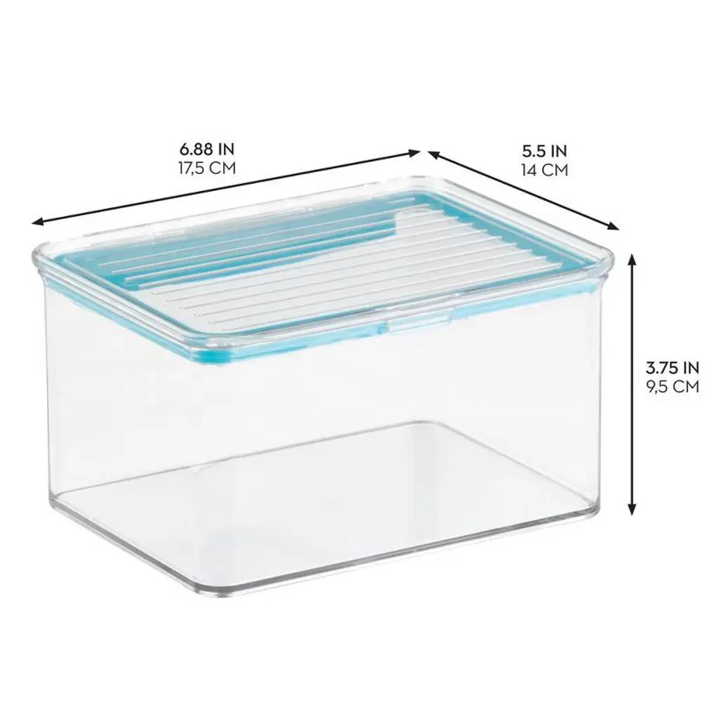 Turn any underachieving pantry into one that's hyper-organized with the iDesign Small Food Storage Box . The easy open hinged lid features an airtight seal to ensure your favorite ingredients stay fresh. This food-safe storage box brings a sleek, clean look to open shelving, and the transparent construction allows you to keep an easy eye on supply levels so you will never run out of your favorite ingredients again. With iDesign, you can live simply every day.