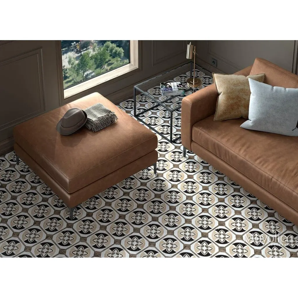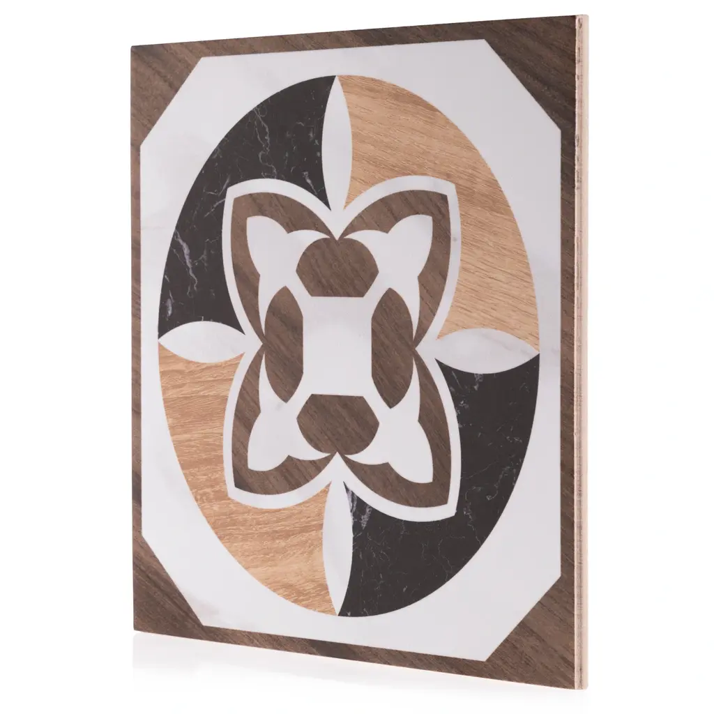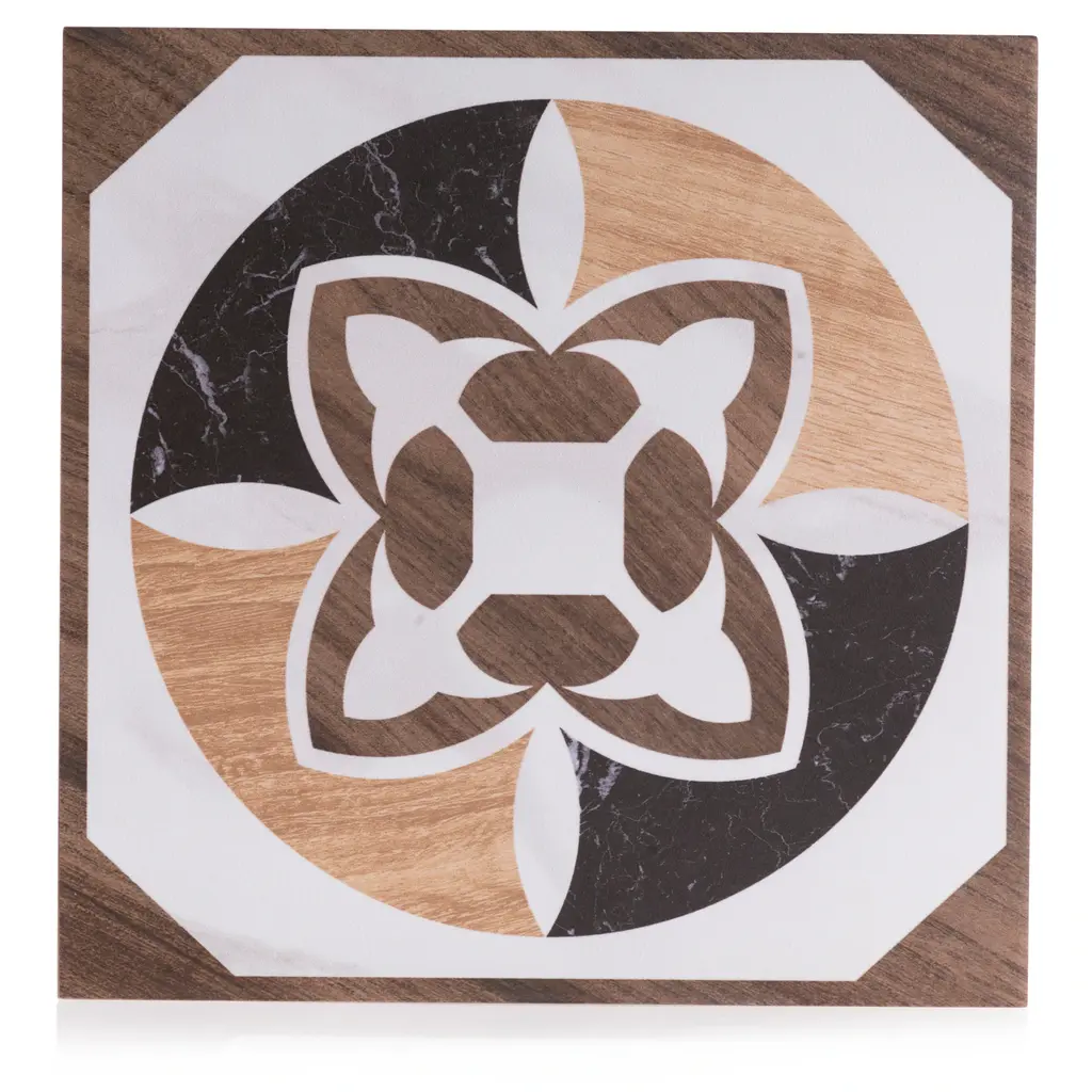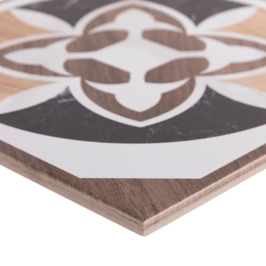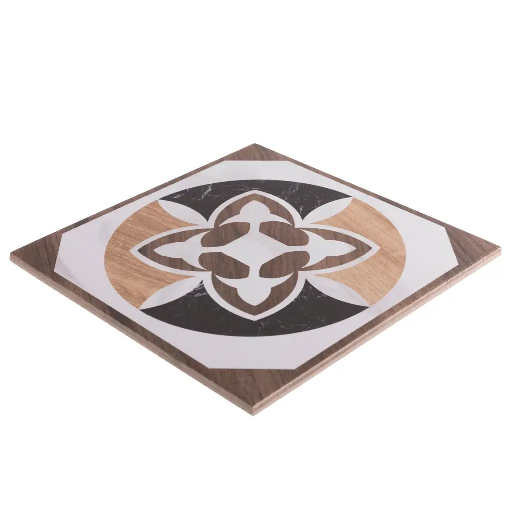 10. 76 Sq. Ft. Per Box25 Pieces per boxPorcelain TileMatte Finish7. 5 mm ThicknessSize: 8"x8"Floor and Wall UseSuitable for all residential and light commercial use Made In SpainPEI- 4 ratingEasy To CleanSamples are recommended Brown, Beige wood tones mixed with Nero Marquina and White Carrara look<All sample orders are non-refundable.