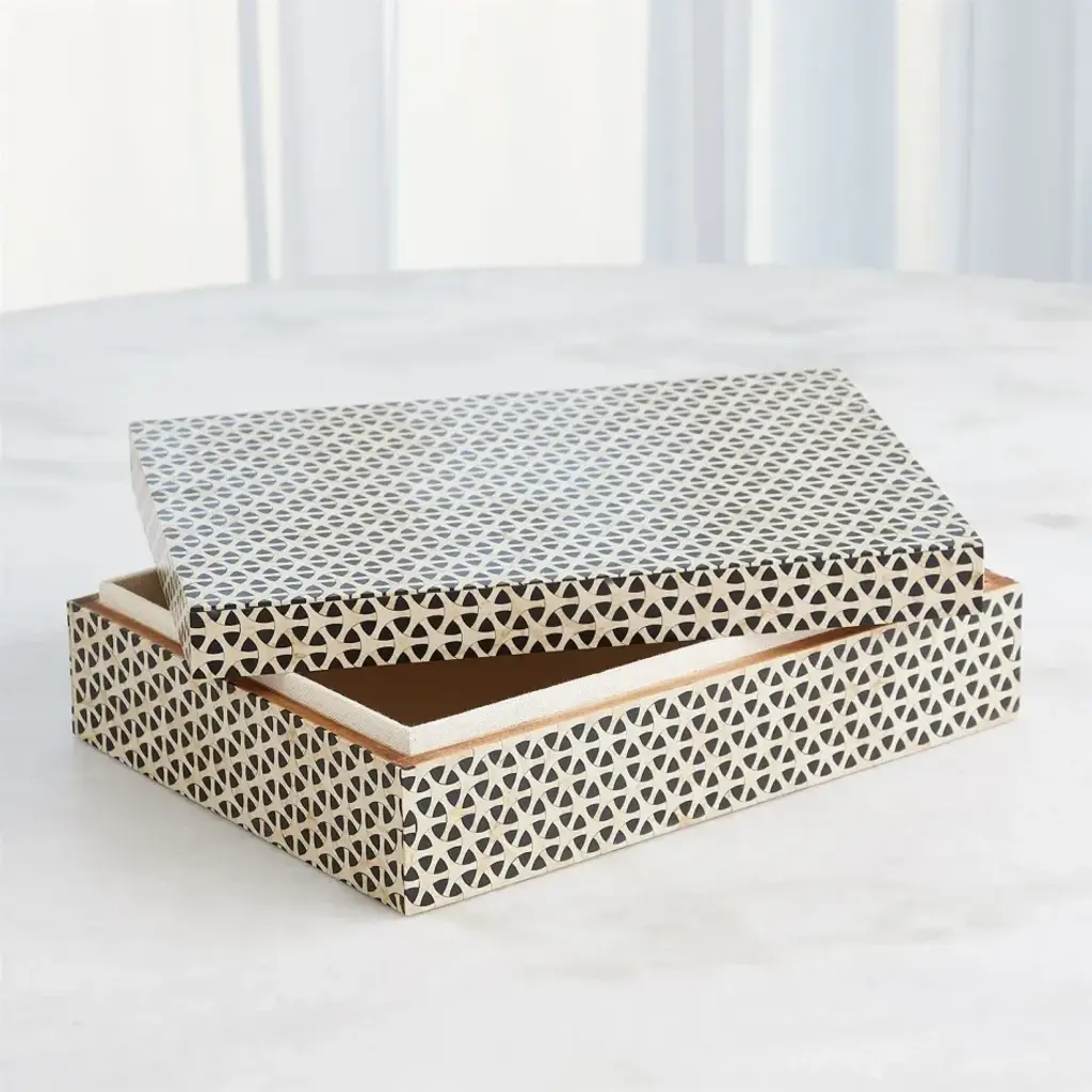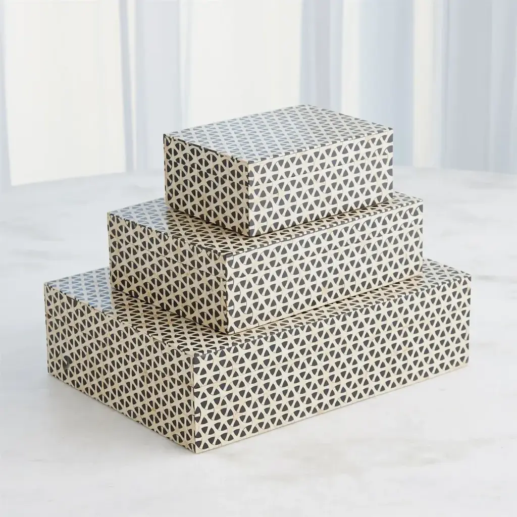 The Infinity Boxes are beautifully handcrafted from resin, forming an intriguing and visually captivating geometric pattern. From a fashion forward perspective, Global Views offers accessories, furniture, statement lighting, and an assortment of rugs and mirrors to add beauty and joy to your home.
