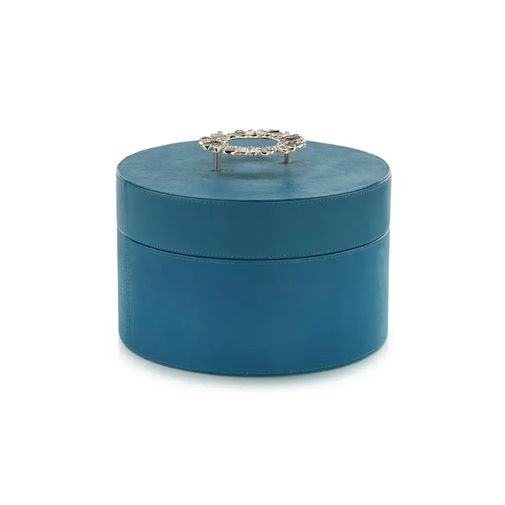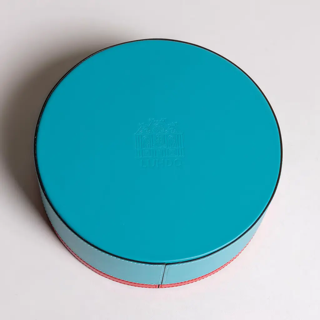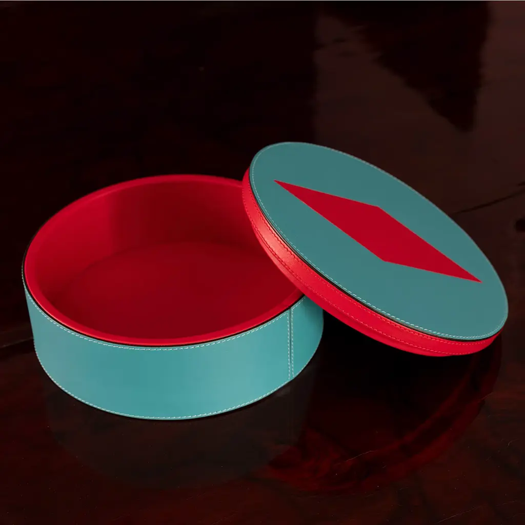 Box entirely lined in leather with a geometric pattern, Luhdo's signature, made by skilled craftsmen using the inlay technique. An object for oneself or an exclusive gift in which to store one's own objects or as a furnishing accessory.