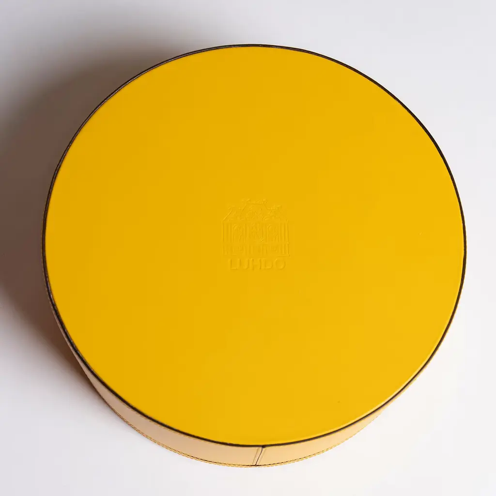 Box entirely lined in leather with embossed geometric motif, Luhdo's leitmotif. An object for oneself or an exclusive gift in which to store one's own objects or as a furnishing accessory.