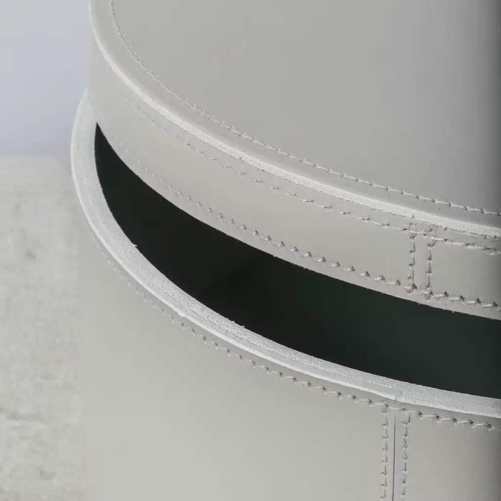 This striking piece of functional design is the product of exquisite craftsmanship and a modern sensibility that give it a timeless allure, which will complement any decor. The finest leather is used to craft this storage basket featuring a perfectly round body and a practical lid, both made in saddle leather dyed using vegetable pigments in an elegant white shade. Either alone, or paired with the other piece from the same series, this basket will be a precious addition to any room in the house.
