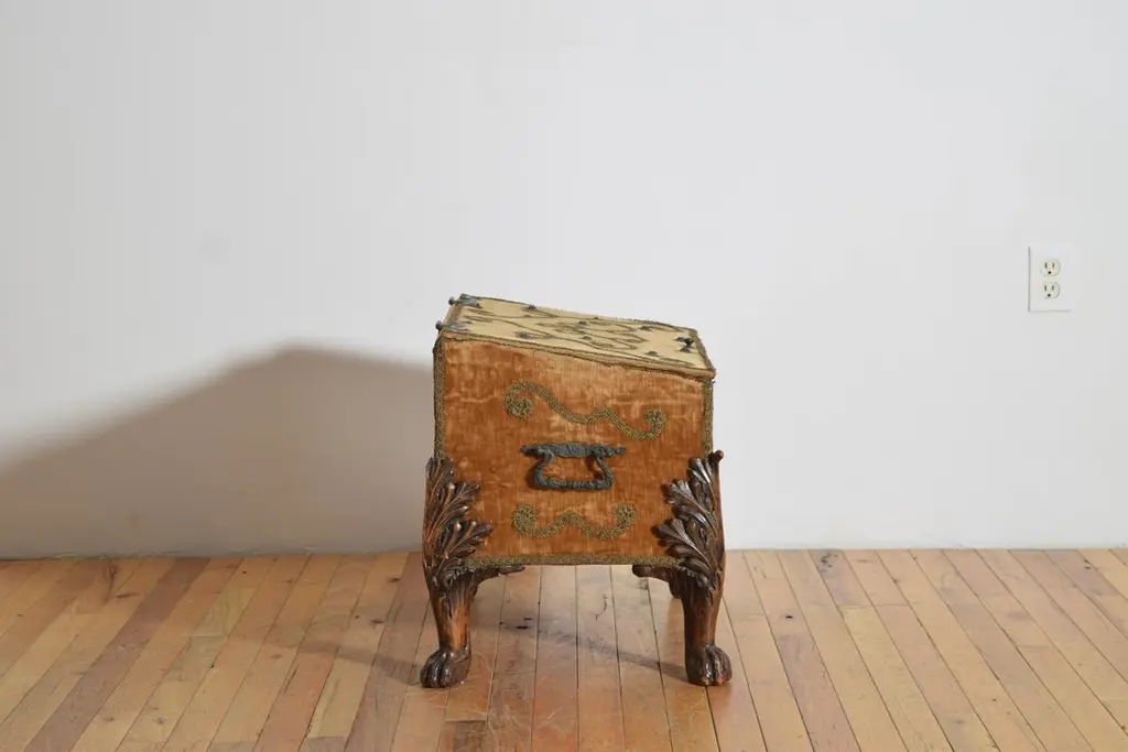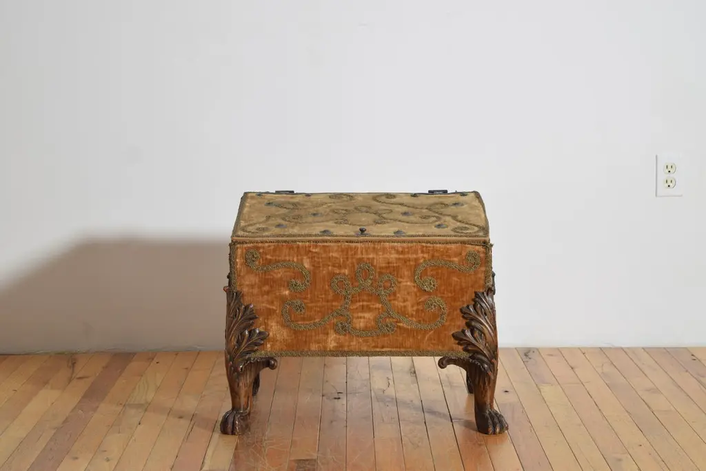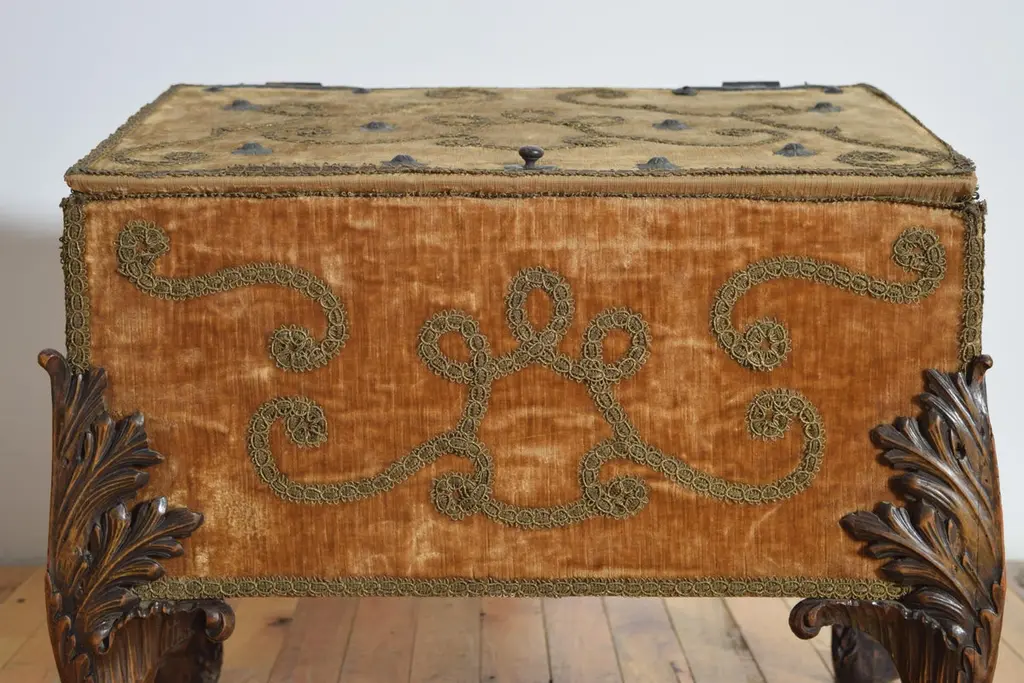 Italian, Baroque Revival, Velvet Upholstered Large Footed Box, Ca. 1875