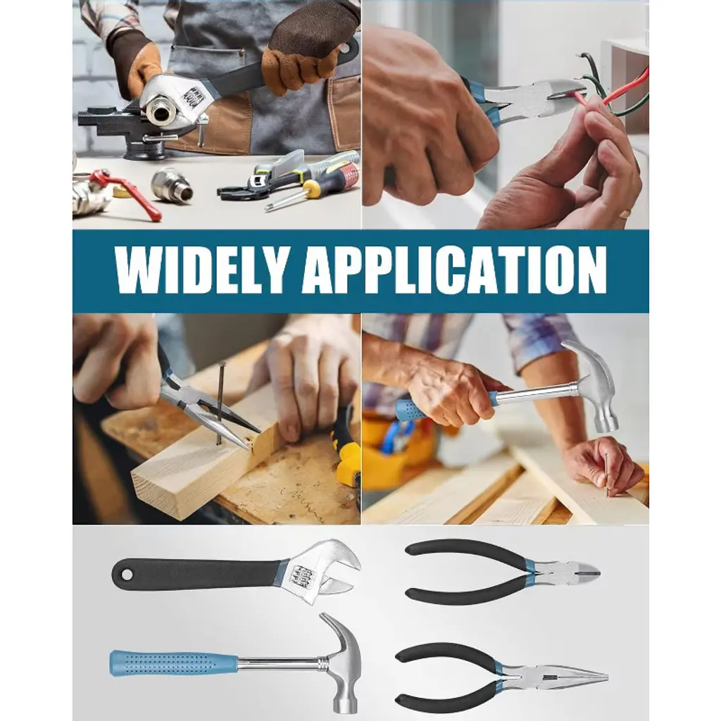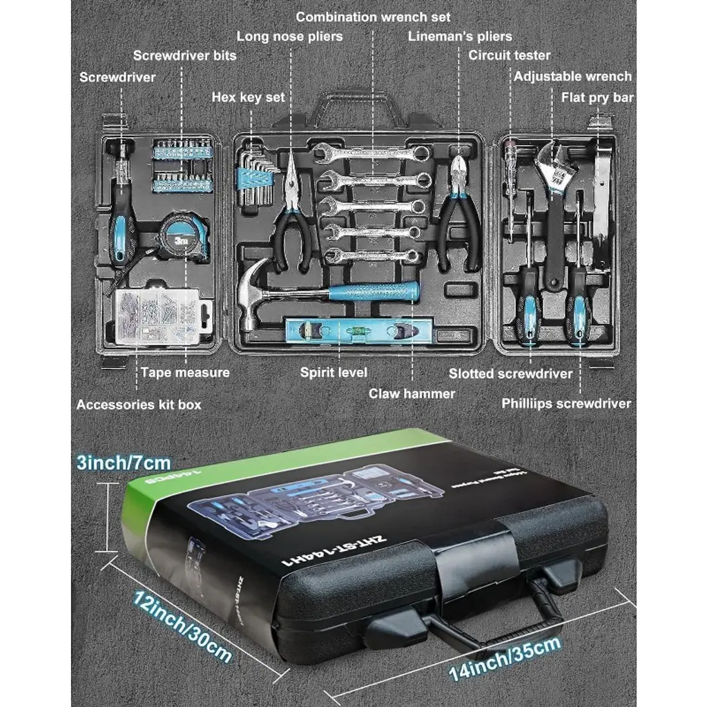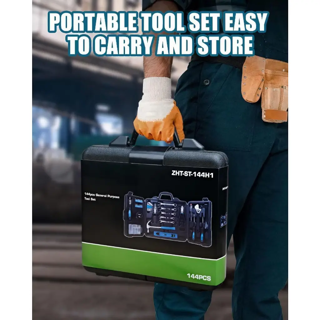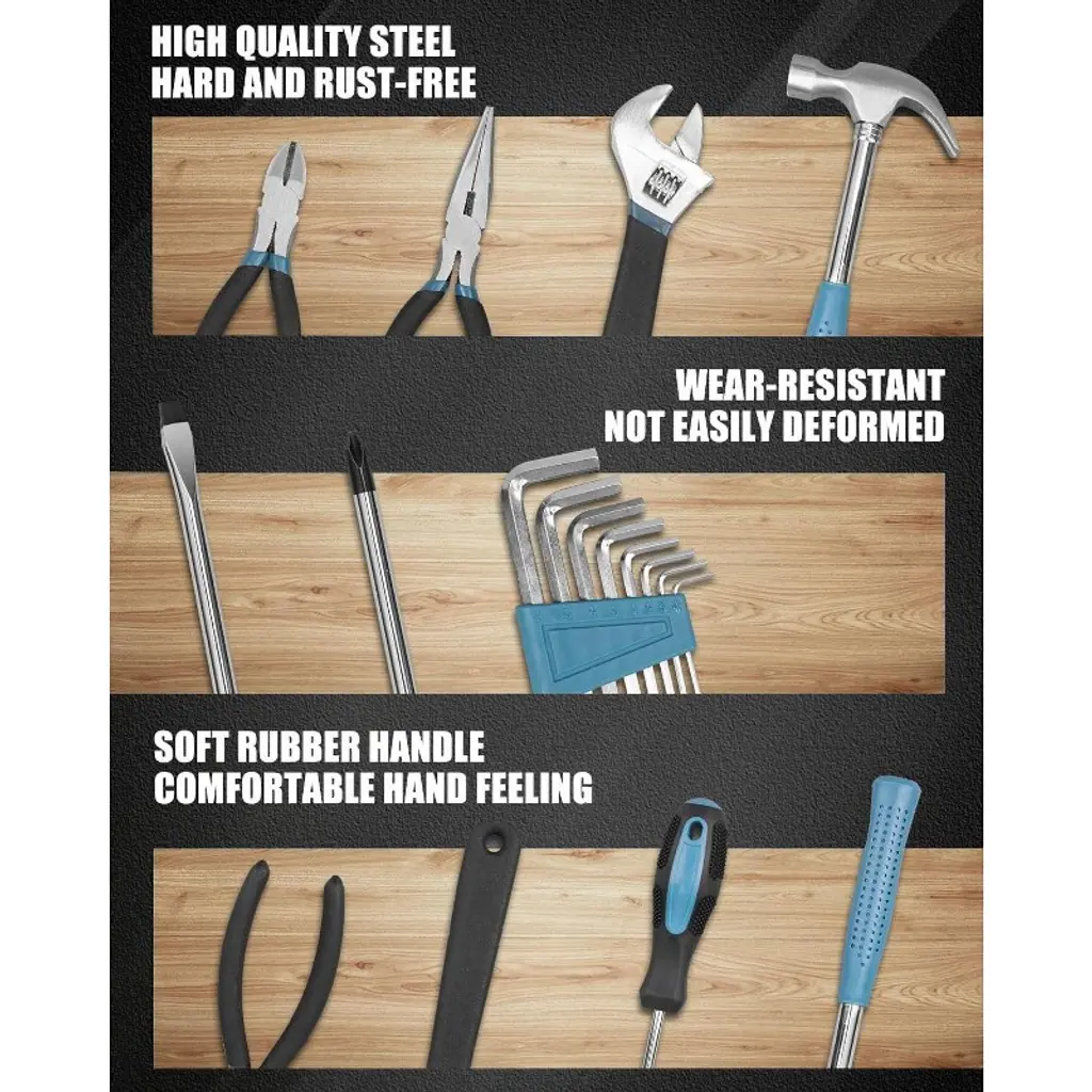 Discover our all - in - one 144 - piece hand tool set, a must - have for every home. This multi - functional kit is suitable for a wide range of tasks, from simple repairs to complex furniture assembly. Crafted from high - quality materials with anti - corrosion treatment, the tools are durable and reliable. The set includes a 100 - piece hardware kit box with plastic anchors, screws, and nails, along with a variety of tools like screwdriver bit sets, wrenches, pliers, and a hammer. The blow - moulded case keeps everything organized and portable, allowing you to easily find the right tool for the job. Whether you're a DIY enthusiast or just need to fix something around the house, this tool set will make your life easier and your projects more efficient.