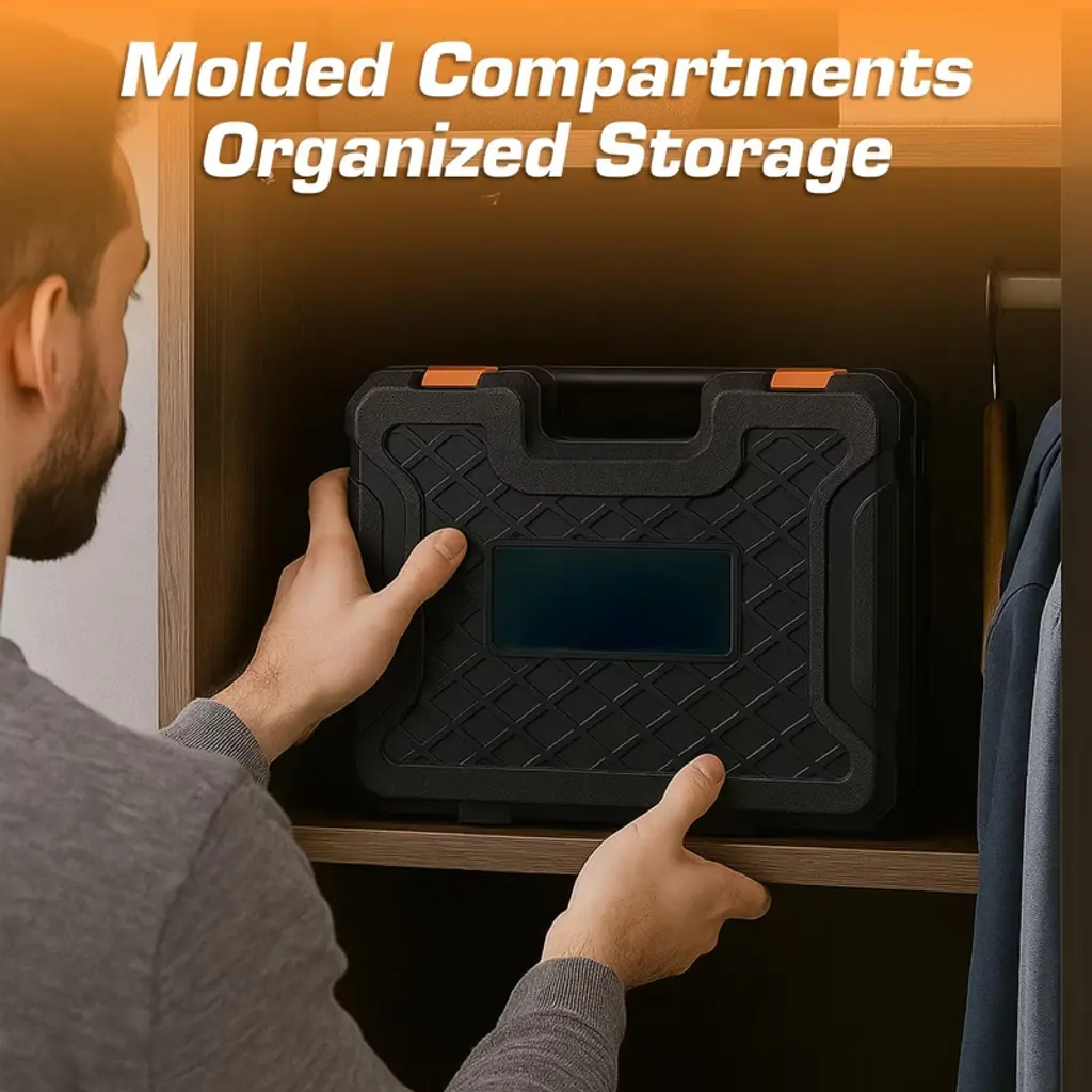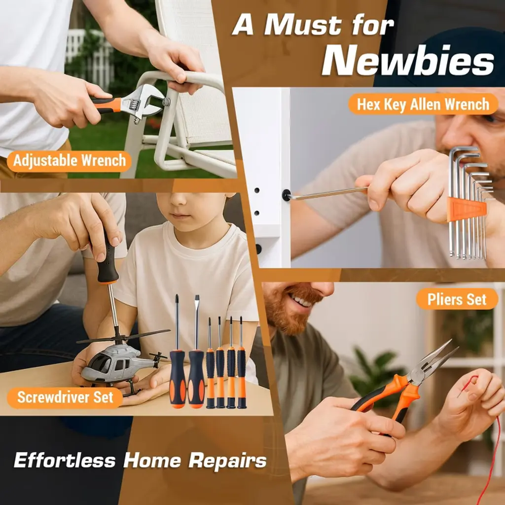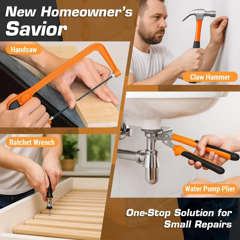 Looking for a versatile tool set? Our 160 - piece tool set is the answer. It comes with a comprehensive collection of essential hand tools, including hammers, pliers, wrenches, screwdrivers, measuring tape, utility knife, and various sockets. These tools are ideal for multiple applications, whether it's basic home maintenance, DIY projects, or automotive repairs. The set is stored in a durable molded carrying case with dedicated slots for each tool, keeping them organized and protected. It's perfect for common household tasks like furniture assembly, picture hanging, and minor repairs, as well as basic auto maintenance. The lightweight case with secure latches allows for easy transportation and storage. This tool set makes an excellent gift for new homeowners, mechanics, and men, offering a convenient all - in - one solution for daily needs.
