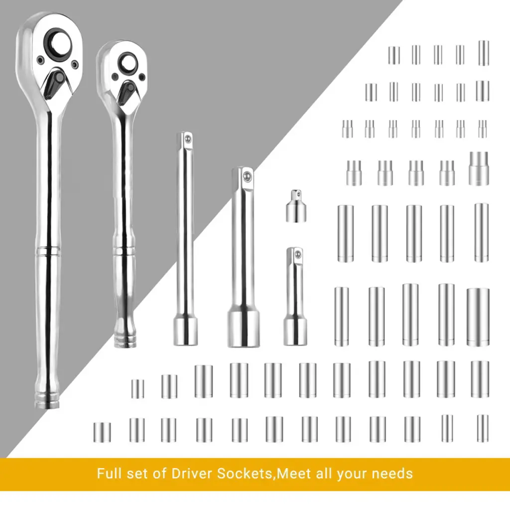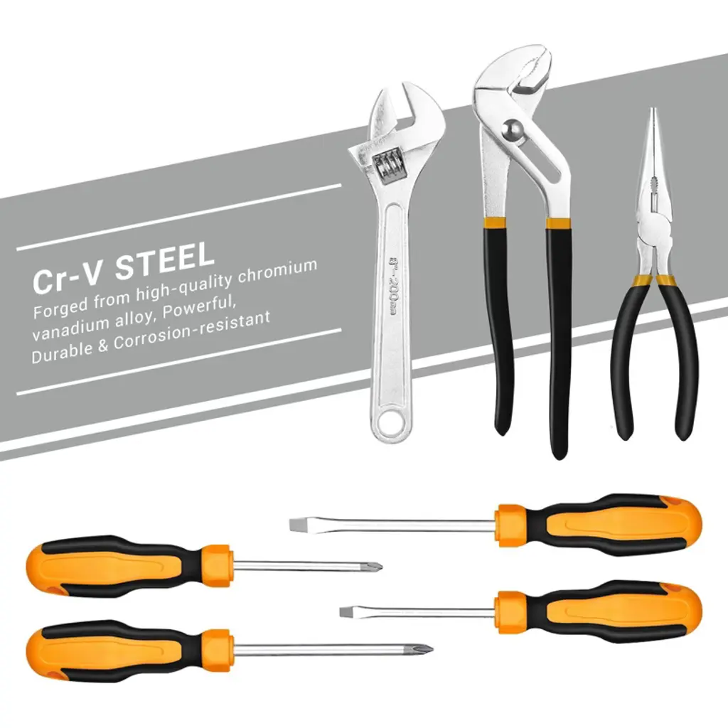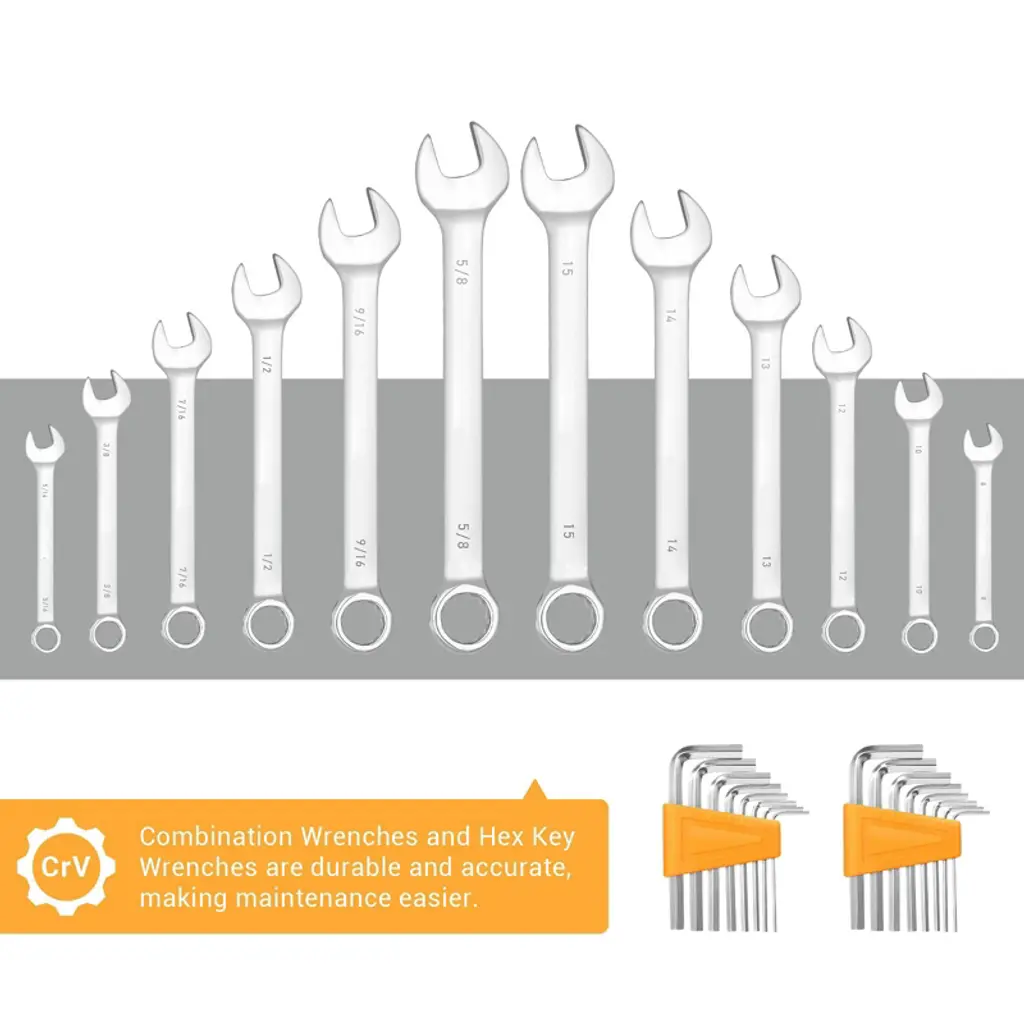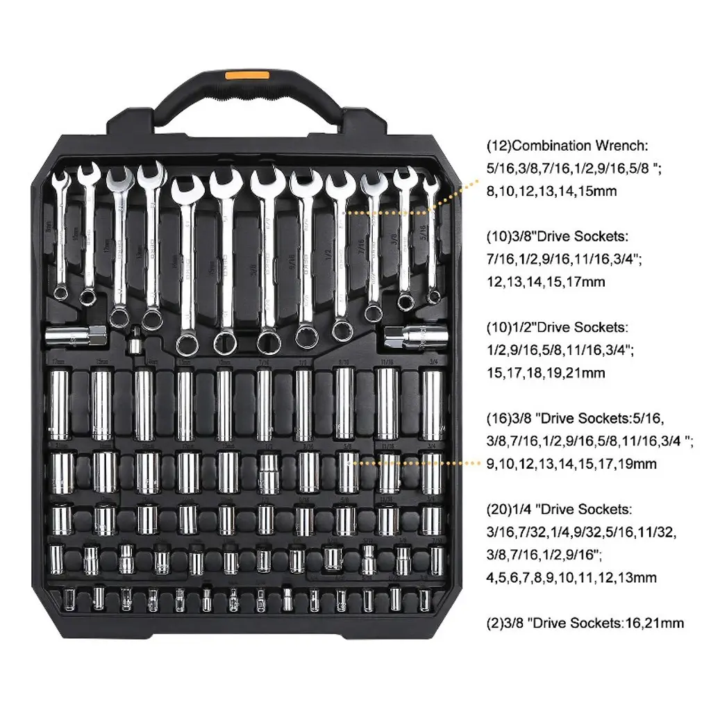 Discover this comprehensive 192 - piece mechanics tool set, perfect for both household and basic vehicle repairs. Crafted from high - quality chrome vanadium, these tools are strong, durable, and corrosion - resistant, meeting or exceeding ANSI standards. Whether you need to hang a picture, open a box, or tighten screws, this tool set has got you covered. It comes in a handy blow - molded case that not only makes it easy to carry but also keeps the tools organized. The unique black case with a diamond - shaped design is not only dirt - resistant but also looks stylish. Weighing just 17.86 pounds, it's lightweight and convenient for various tasks. With this tool set, you can handle repairs with ease and add a touch of practicality to your life.