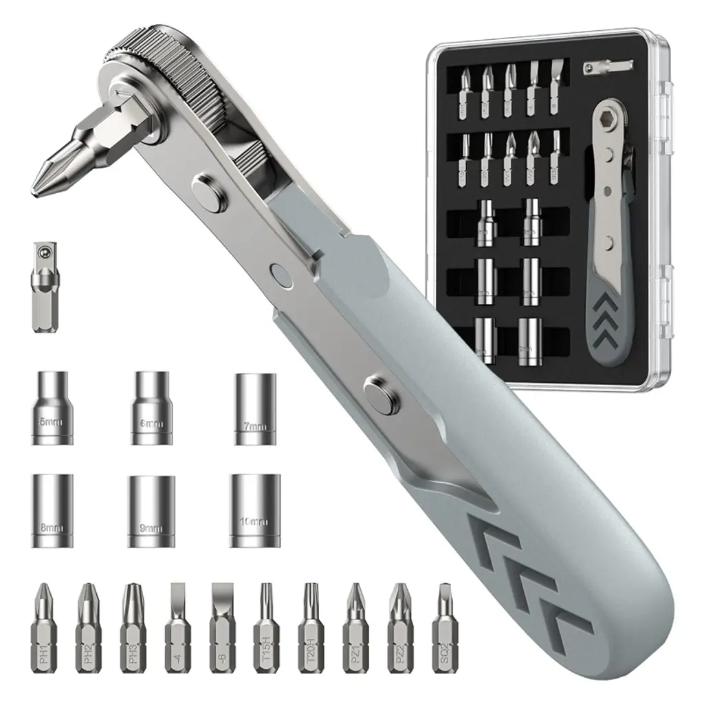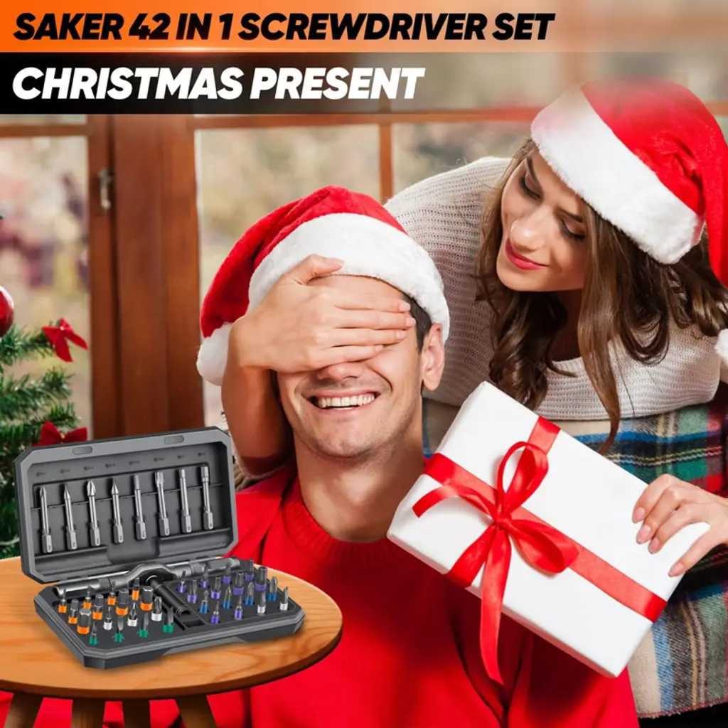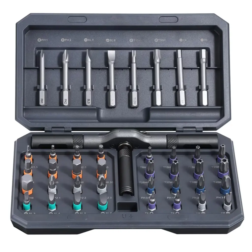 Discover this 42 - in - 1 magnetic screwdriver set, a must - have for all your repair and DIY needs. It includes 8 pcs 45mm long and 32 pcs 25mm short screwdriver heads in various types. The ergonomic T - handle offers a comfortable grip, while the ratchet screwdriver allows for easy mode switching between forward, backward, and locking. The T - shaped handle is made of aluminum alloy, and the drill bit is S2 alloy steel, ensuring durability. The strong magnetization of the drill bits guarantees easy replacement and firm screw - holding. This set comes with a portable storage box, so you can take it with you anywhere. It's perfect for furniture assembly, household appliance maintenance, bicycle fixing, and DIY projects, making your repair tasks a breeze and adding convenience to your life.