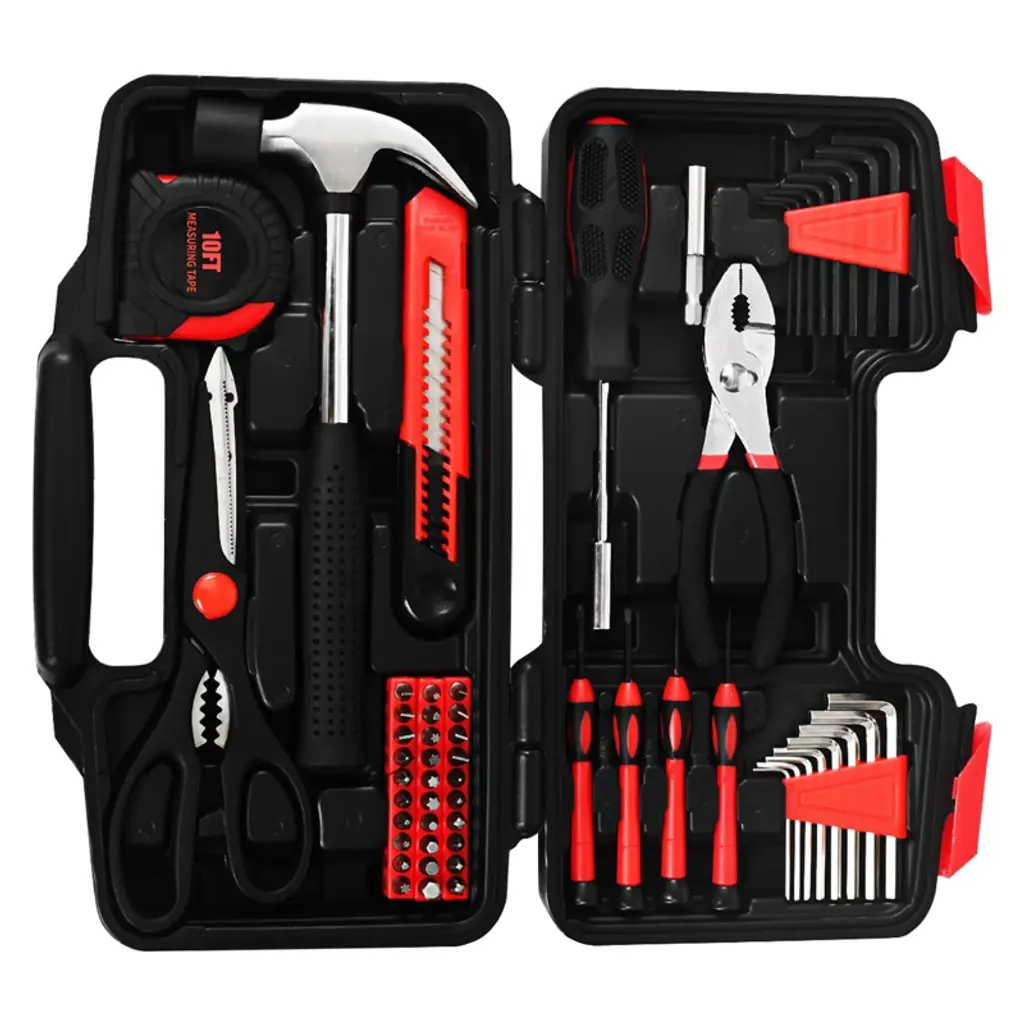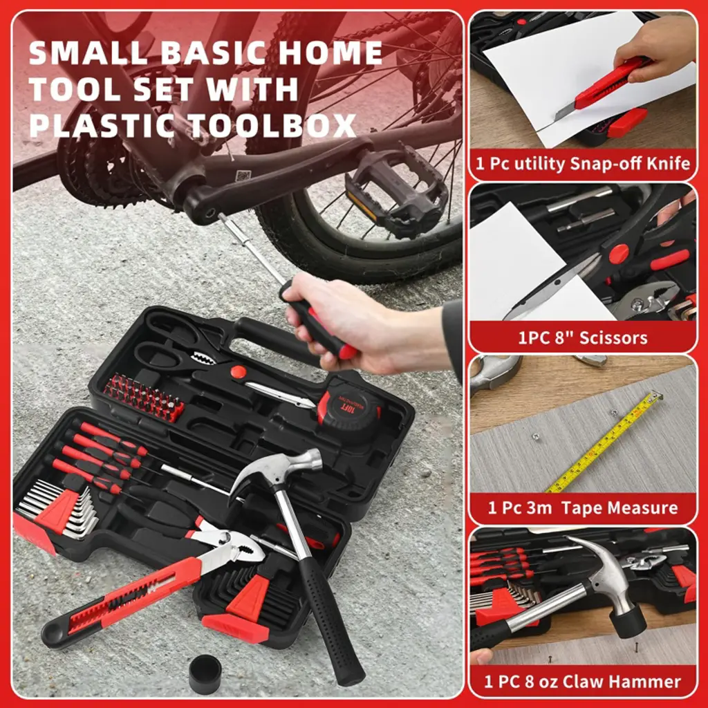 Itopfox 58-piece Home Repair Tool Set With Plastic Toolbox, Essential Hand Tools For Household, Office & College Repairs, Red