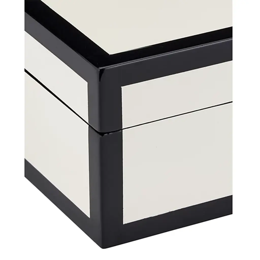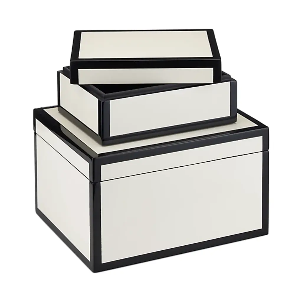 The Ivory Lacquer Box, Set of 2 from Currey & Company employs a time-honored finishing technique dating back thousands of years. Multiple painstaking applications of lacquer create the exceptionally reflective surface that distinguishes these engineered wood containers. The contrasting trim creates a clean, defined border that emphasizes their geometric precision. This nesting duo blends traditional Asian craftsmanship with modern minimalist design principles. While sealed with a protective coating, these boxes should not contain liquid. The distinctive lacquering process requires skilled craftspeople who apply and polish each layer by hand, resulting in storage pieces that double as decorative art when displayed together or separately.