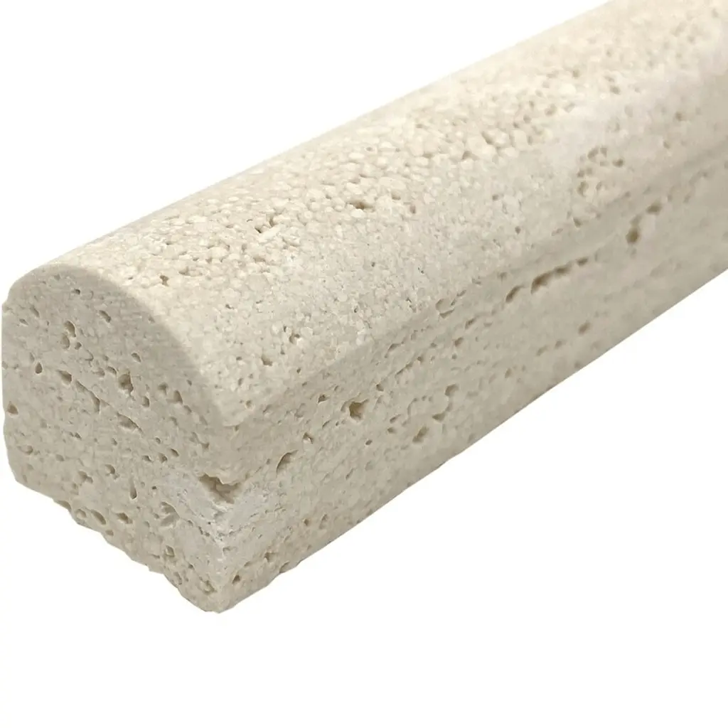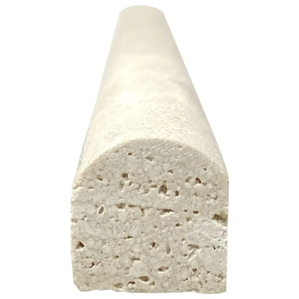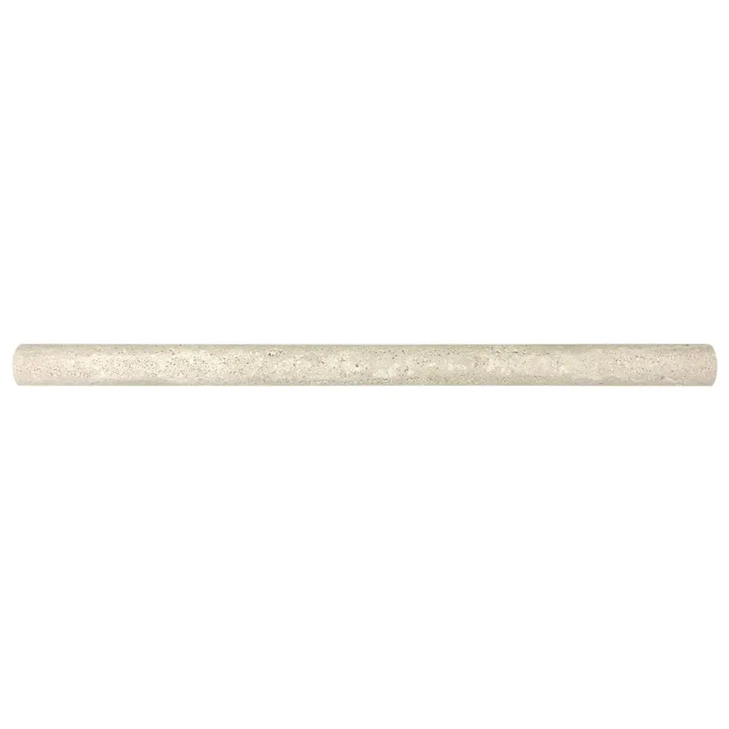 Enhance the look of your interior design projects with the Ivory Travertine 0.75" x 12" Pencil Liner. This decorative trim piece is a versatile option, measuring 1 inch in width by 12 inches in length. The light ivory finish adds a neutral and classic touch to any design style. Use this liner tile to frame a backsplash, shower surround, fireplace, or other architectural feature. Crafted from durable travertine, it is easy to clean and resistant to moisture. Elevate your home improvement project with this practical and stylish choice.Features:Product Details: